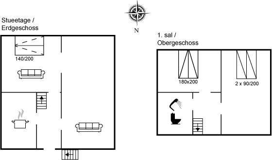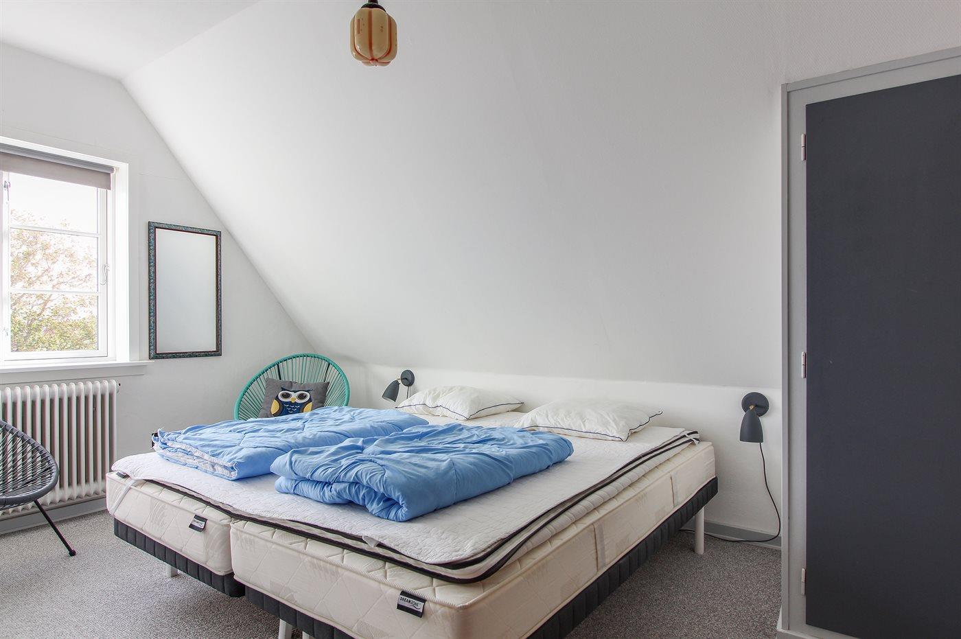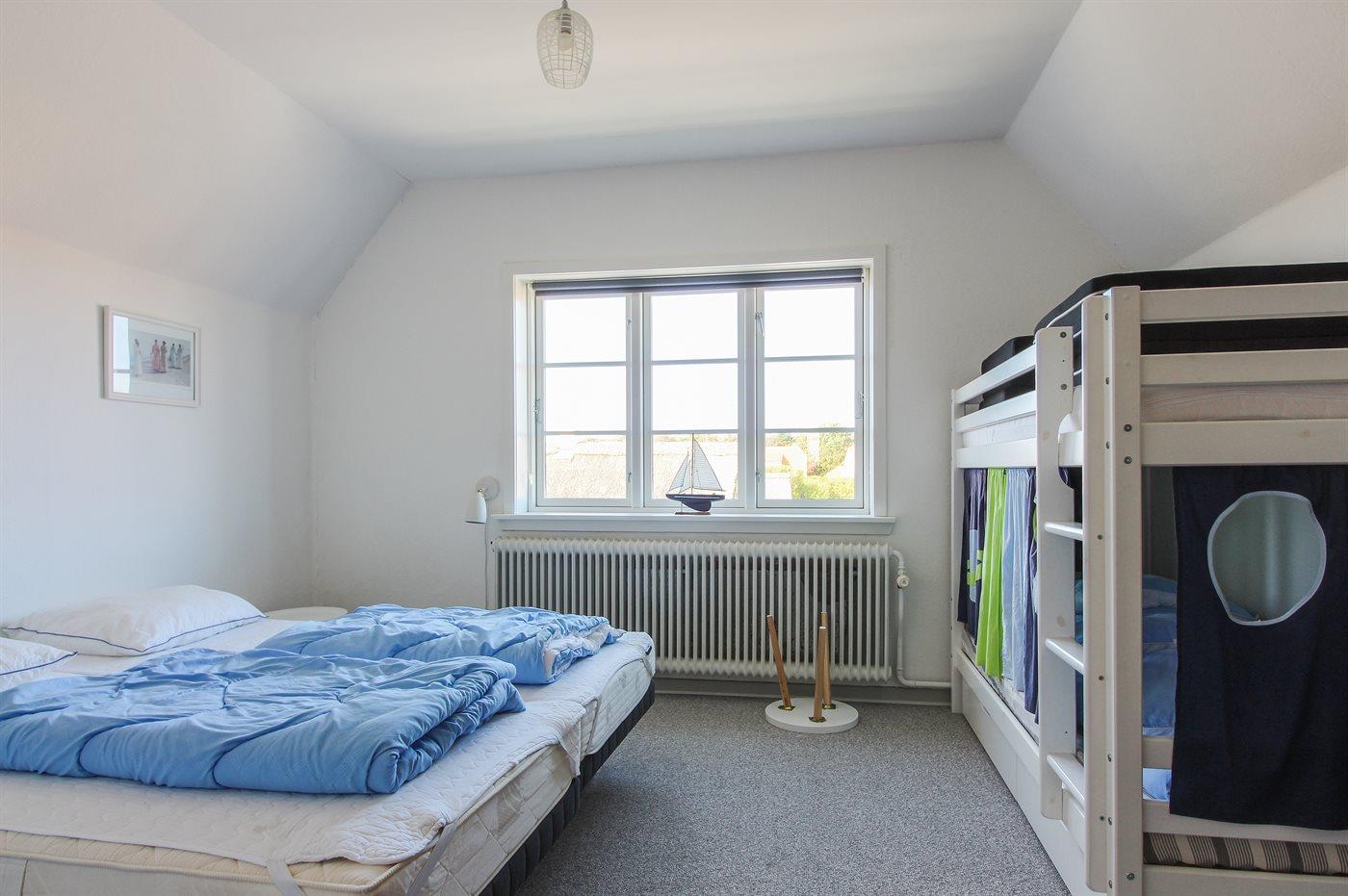 Der er i alt 2 soveværelser. Sovepladserne fordeler sig på: 2 sovepladser i dobbeltseng. 2 sovepladser i enkeltsenge. 2 sovepladser i køjeseng. 2 sovepladser i sovesofa (dobbelt). Derudover er der 1 stk. barneseng.