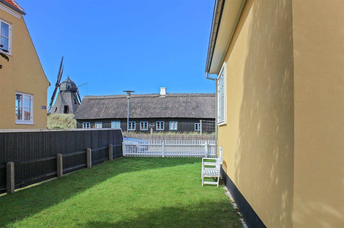 Ferieboligen er beliggende på en 350 m² stor havegrund. Grunden er indhegnet. Der er 150 m til havet. Nærmeste forretning er beliggende i en afstand af 1100 m. Til ferieboligen hører 50 m² terrasseareal. Parkering ved ferieboligen.