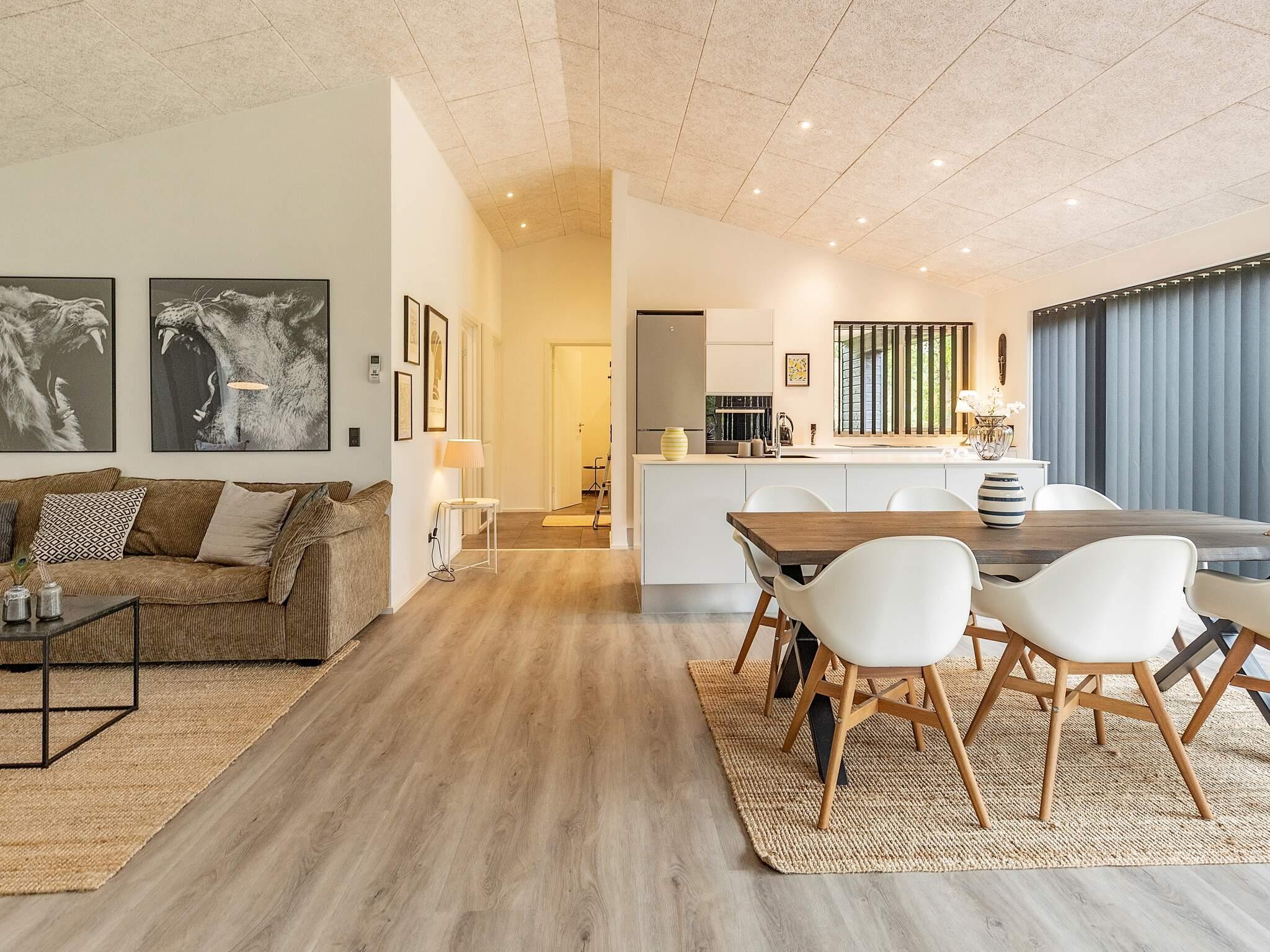 Nybygget sommerhus i 2022 i naturskønne omgivelser og beliggende få hundrede meter fra stort feriecenter med masser af aktiviteter. Grunden ligger med bare 600 meter til havet og 400 meter til Skallerup Klit. Sommerhuset er indrettet lyst og venligt på en ugenert plantagegrund. Her findes såvel åben som overdækket terrasse, hvor der er der rig mulighed for at slappe af, nyde ferie og være sammen. Her er også masser af mulighed for sol eller skygge og samling omkring husets havegrill.Ingen parkering på græsset.