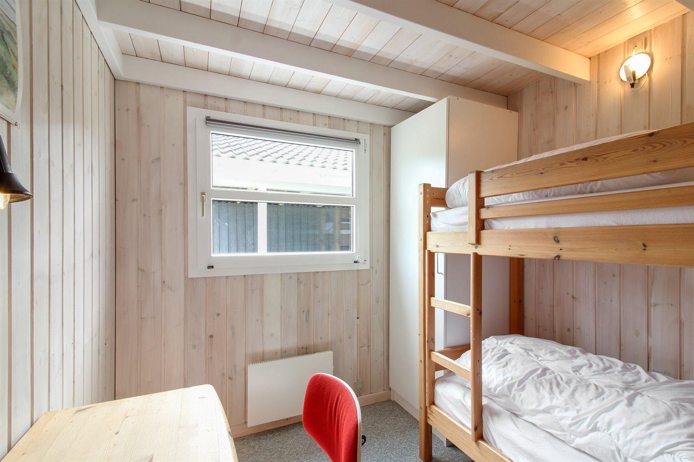 Der er i alt 3 soveværelser. Sovepladserne fordeler sig på: 4 sovepladser i dobbeltsenge. 2 sovepladser i køjeseng. 2 sovepladser på madrasser. 2 af disse sovepladser befinder sig på husets hems. Derudover er der 1 stk. barneseng.