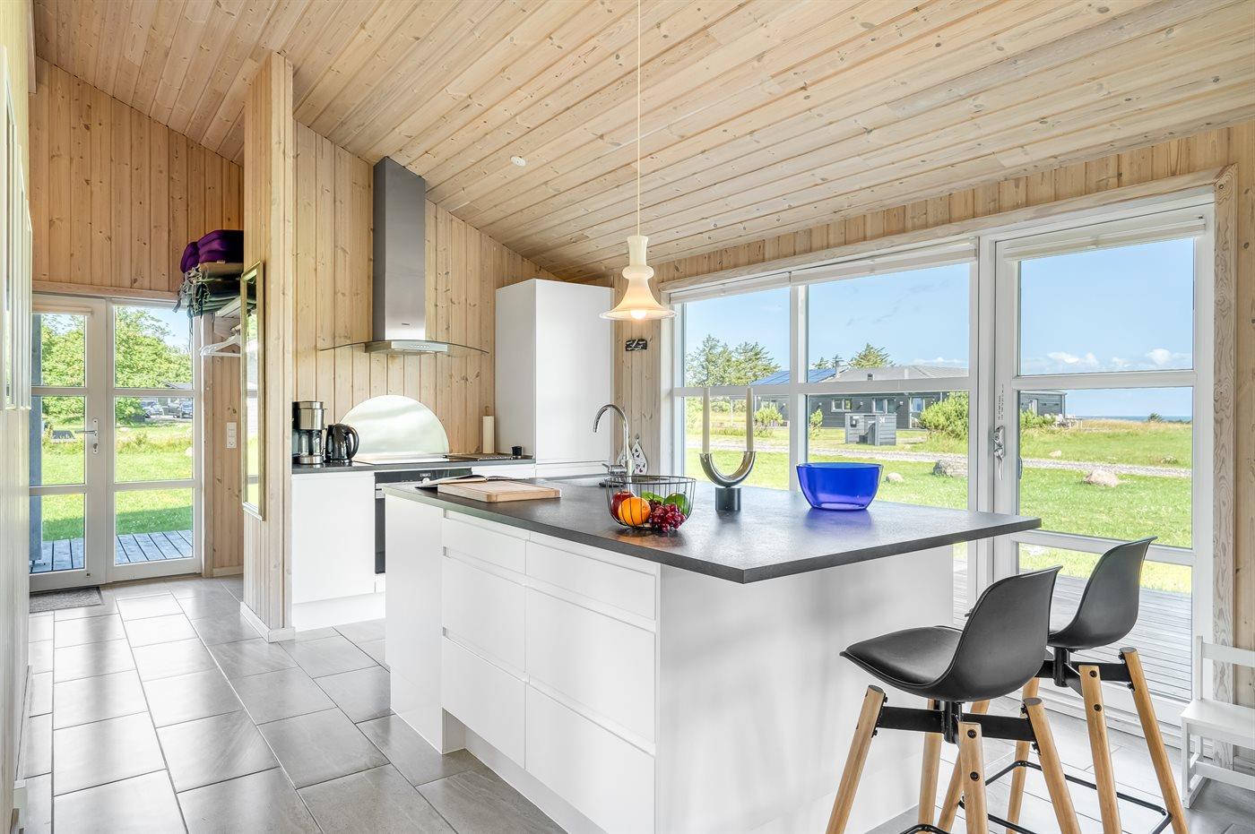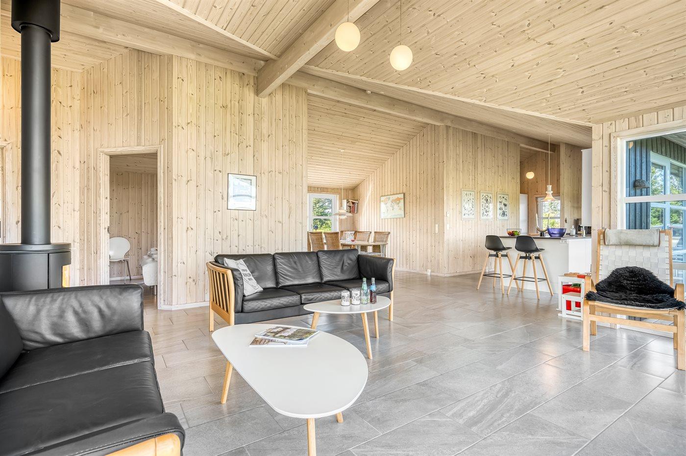 Sommerhuset egner sig til 8 personer samt 1 barn op til 3 år. 1 af sovepladserne er kun egnet til større børn (4-11 år). Ferieboligen er på 123 m² og er bygget i 2016. Der er tilladt at medbringe en lille, allergivenlig hund på max. 10 kilo. Ferieboligen er udstyret med energibesparende varmepumpe. Hele ferieboligen har gulvvarme. Ferieboligen har vaskemaskine. Tørretumbler. Frysekapacitet på 60 liter. Der er desuden brændeovn. Til de små er der 1 stk. barnestol. Puslebord.