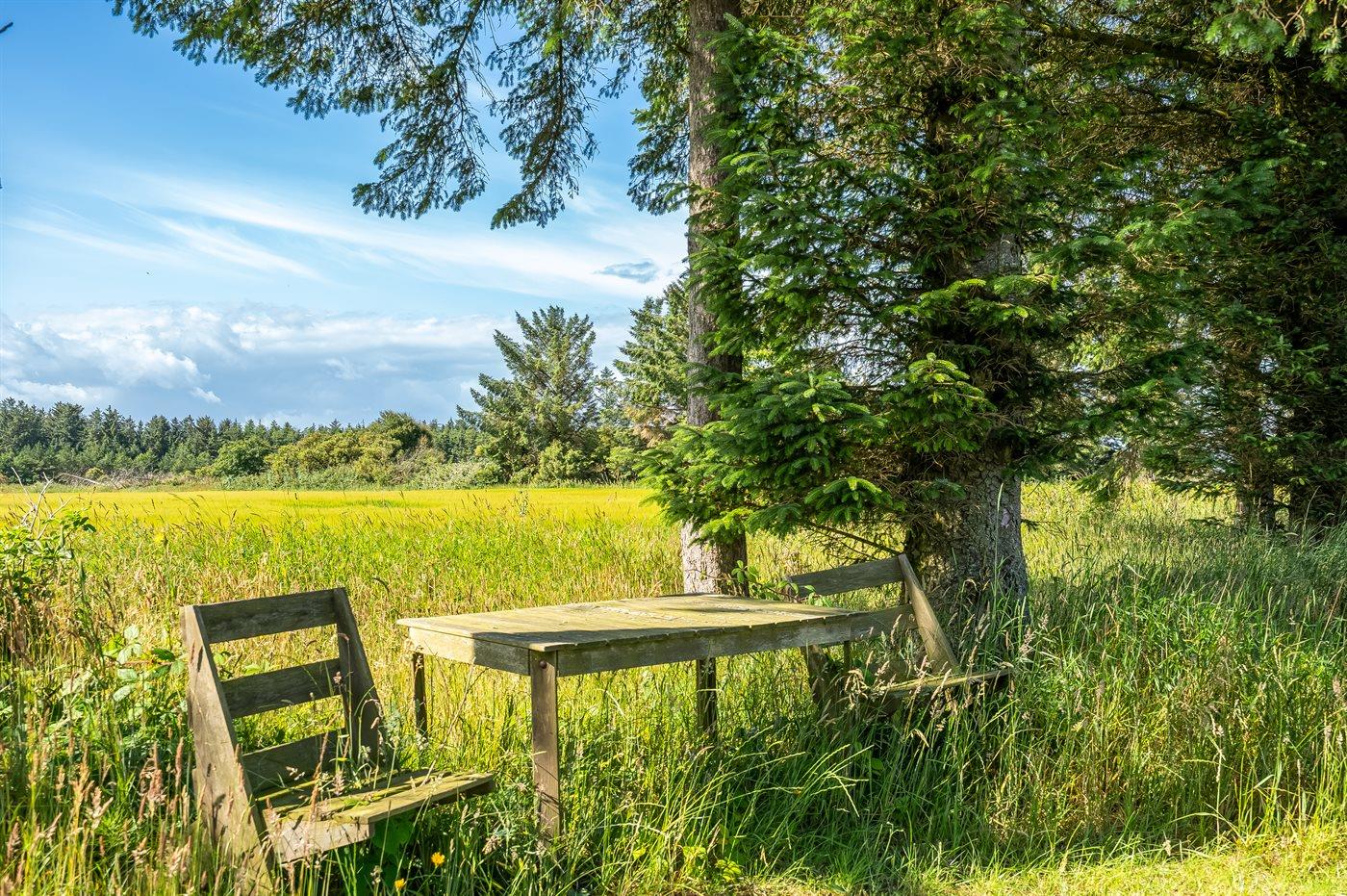 Ferieboligen er beliggende på en 3000 m² stor naturgrund. Der er 1250 m til havet. Nærmeste forretning er beliggende i en afstand af 750 m. Til ferieboligen hører 200 m² terrasseareal. Desuden er der 16 m² overdækket terrasse. Gynge. Sandkasse. Rutchebane. Fodboldmål. Bålsted. Grill til rådighed. Parkering ved ferieboligen.