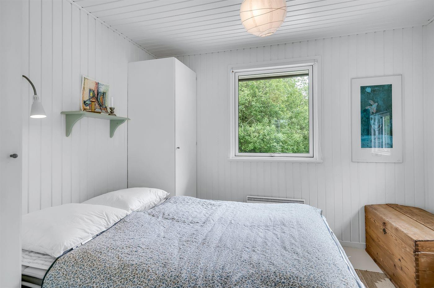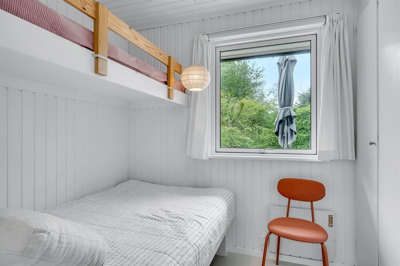 Der er i alt 3 soveværelser. Sovepladserne fordeler sig på: 2 sovepladser i dobbeltseng. 2 sovepladser i enkeltsenge.1 soveplads i køjeseng. Derudover er der 1 stk. barneseng.