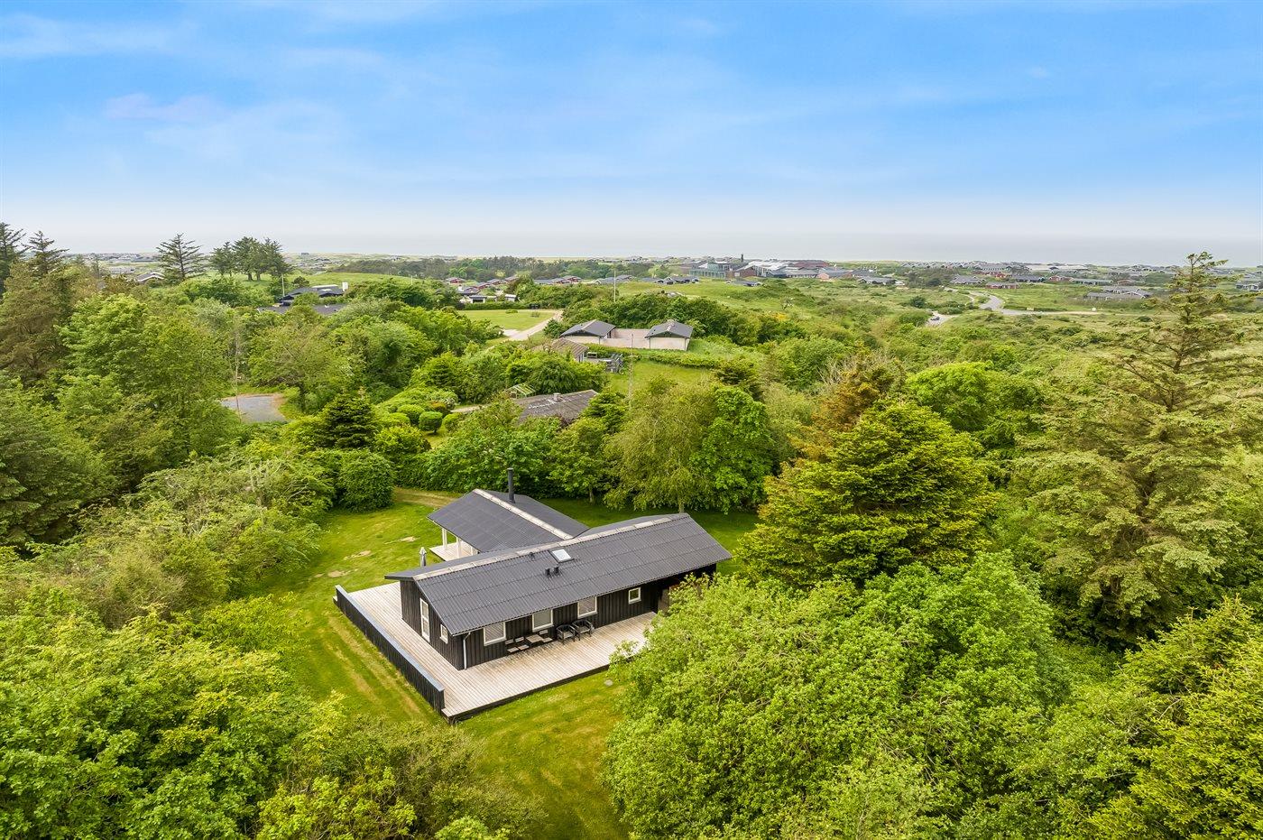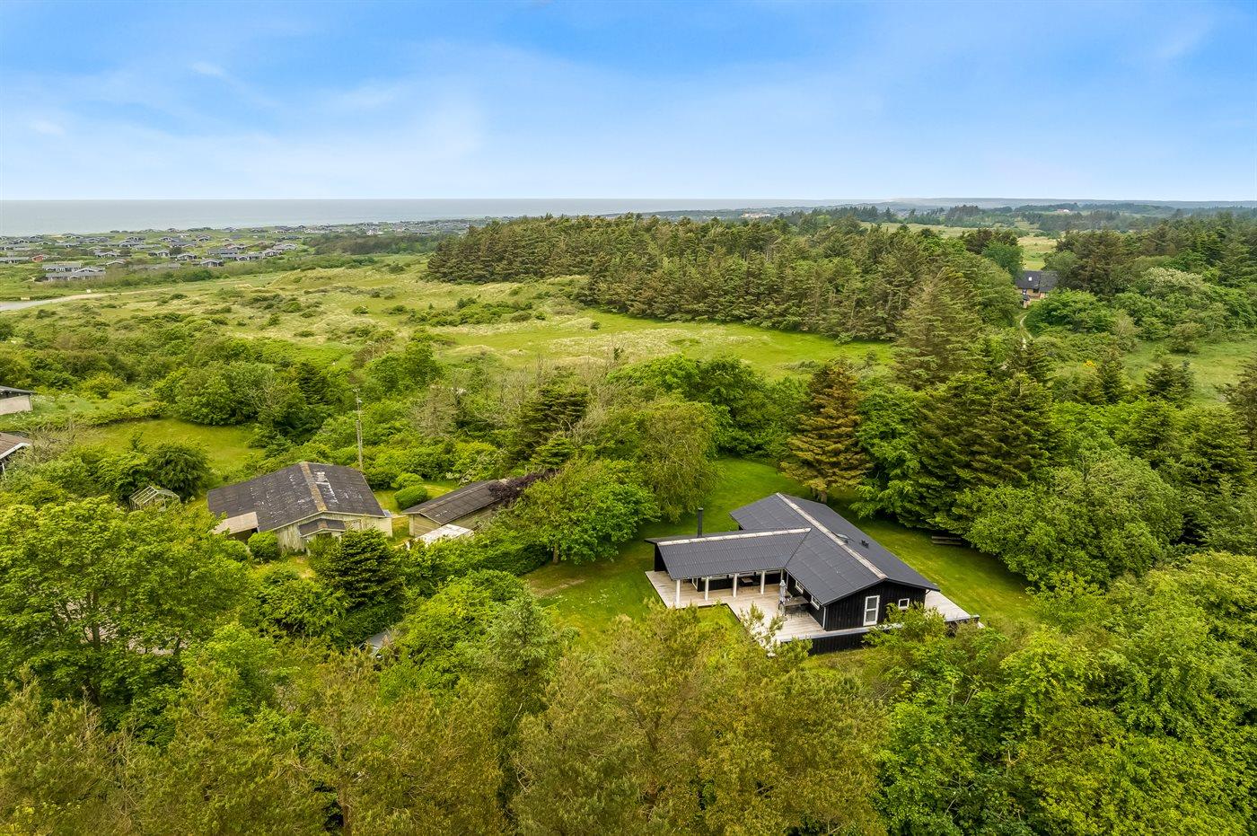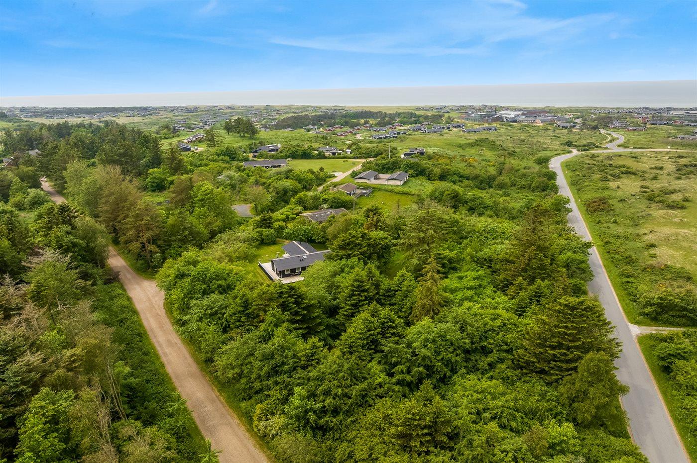 Ferieboligen er beliggende på en 4800 m² stor naturgrund. Der er 1000 m til havet. Nærmeste forretning er beliggende i en afstand af 700 m. Til ferieboligen hører 70 m² terrasseareal. Desuden er der 10 m² overdækket terrasse. Der er carport til rådighed. Parkering ved ferieboligen.
