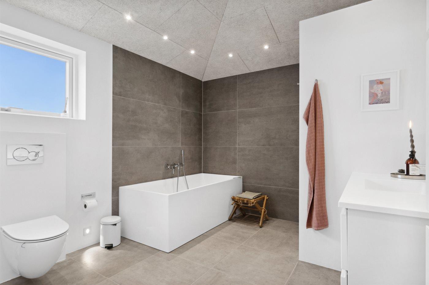 Der er 2 badeværelser med bruseniche og 2 toiletter. Der er gulvvarme på 2 badeværelser.. Badekar.