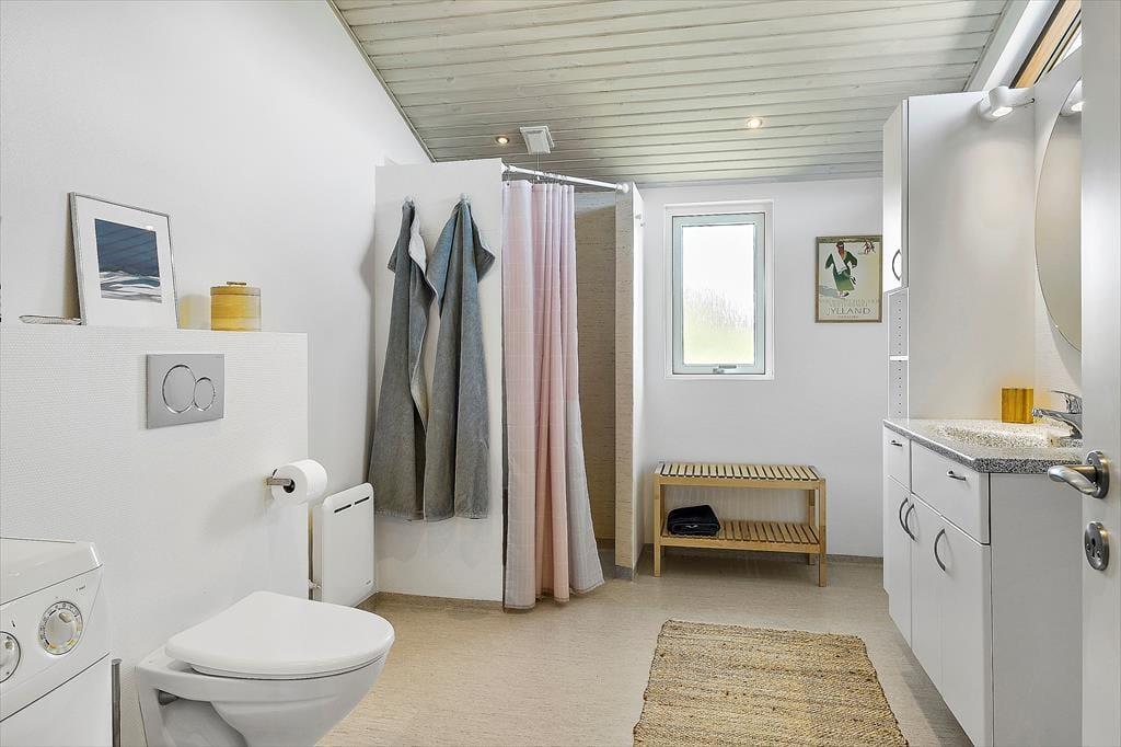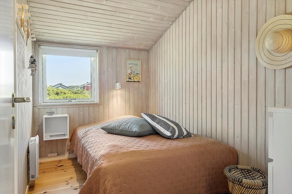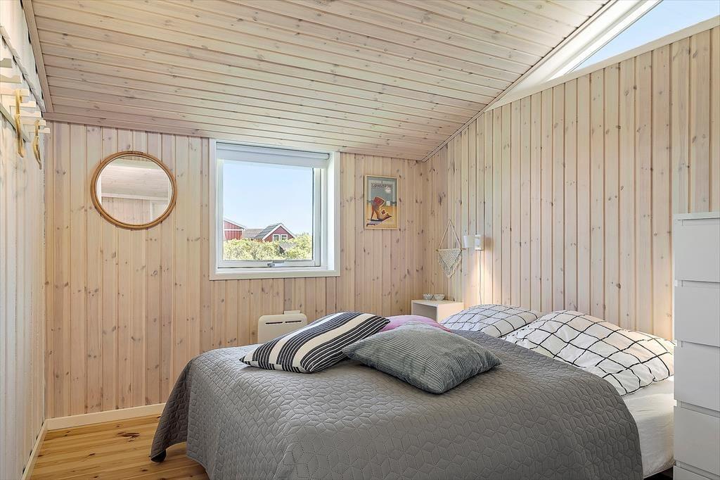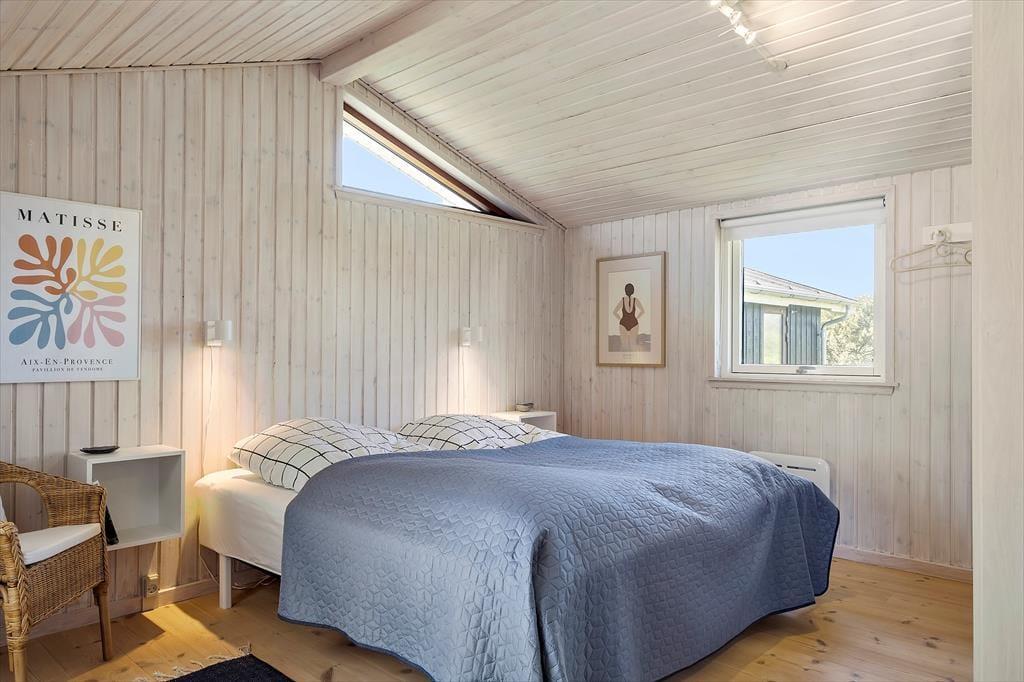 Sommerhuset, der måler 117 m2 og er opført i 1980, er blevet grundigt renoveret i 2020, så indretningen er særdeles indbydende. Et rummeligt badeværelse er udstyret med bruseniche, vaskemaskine og gulvvarme, og i det åbne køkken har I alt, hvad I behøver, når der skal laves mad. Køkkenet er integreret med stuen, så der er kun nogle få skridt hen til spisebordet, når der skal dækkes op til morgenmad, frokost eller aftensmad – og hvis I hellere vil servere maden ude i det fri, har I nem adgang til terrasserne. Bliver I i stuen, kan I nyde den rare atmosfære, varmen fra brændeovnen og møblementets komfort. Og når det er sengetid, kan I se frem til en god nats søvn på de tre soveværelser, der alle er med dobbeltseng.