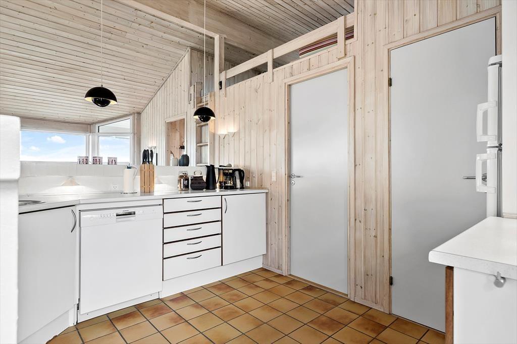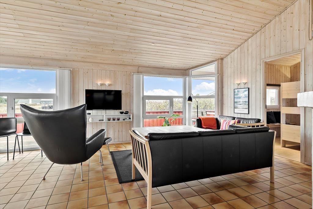 Sommerhusets 102 m2 er blevet holdt ordentligt ved lige siden opførelsen i 1997, og med loft til kip, store vinduespartier og brændeovn er der en dejlig atmosfære inden døre. Det stilfulde interiør er med til at sikre, at I har en både komfortabel og funktionel ramme om ferielivet: For eksempel er det åbne køkken udstyret med alt, hvad I skal bruge for at lave lækker mad, og i stuen har I god plads til at slappe af og hygge jer sammen. På det mere praktiske plan er der vaskemaskine og tørretumbler i et lille depotrum, og på det største af husets to badeværelser bliver I forkælet med spabad og sauna. Planløsningen byder også på tre gode soveværelser, så alt i alt er det en fin feriebolig til seks personer.