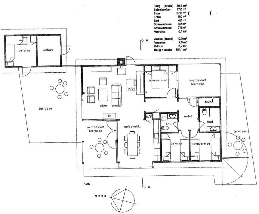 Foran huset er der endnu en overdækket terrasse og en stor græsplæne, der indbyder til masser af sjov og boldspil.