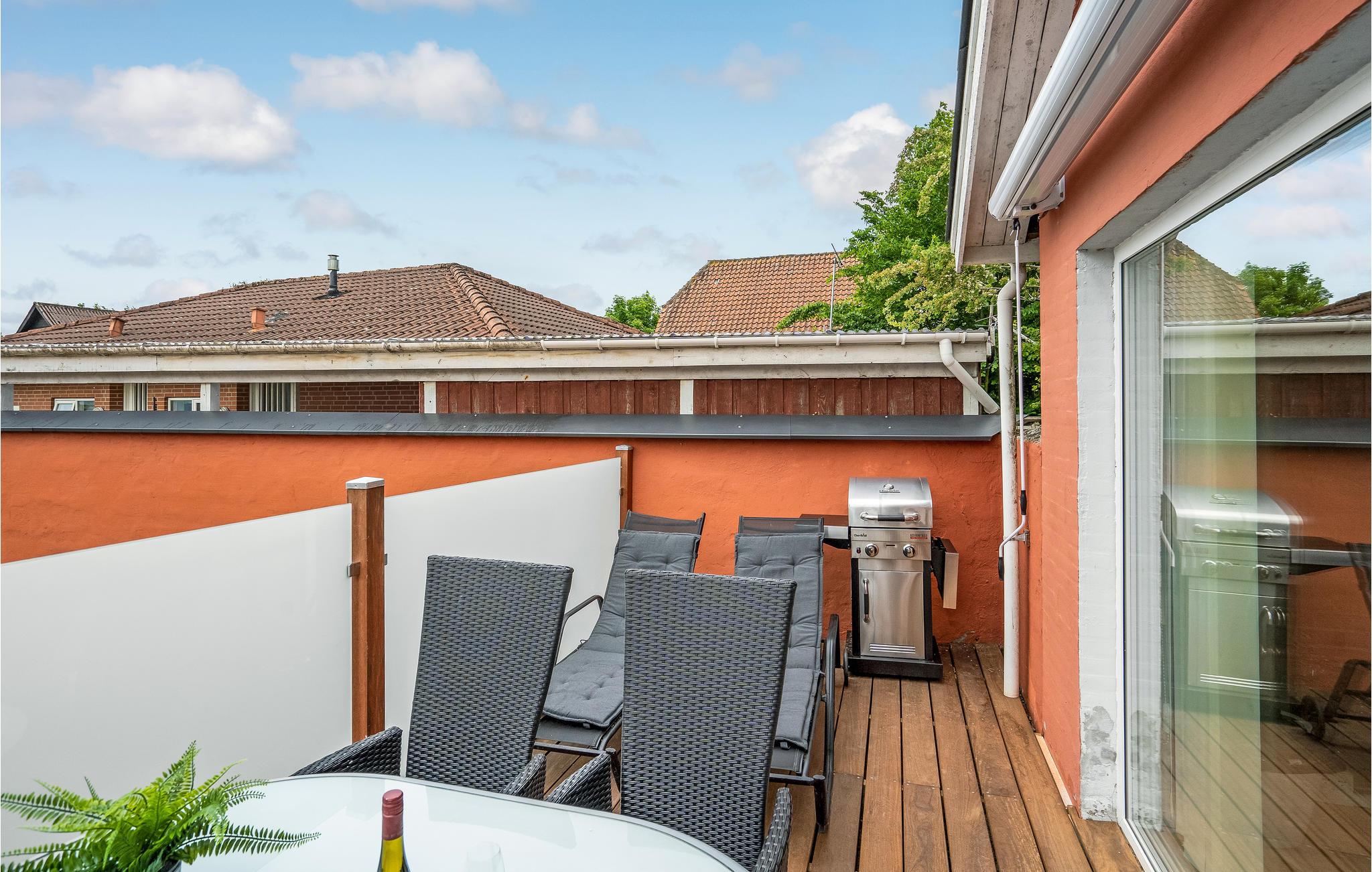 I kan også nyde jeres tid udendørs på den åbne, møblerede terrasse. Grillen giver mulighed for hyggelige griller, og den indhegnede ejendom tilbyder privatliv og sikkerhed for børn eller kæledyr.