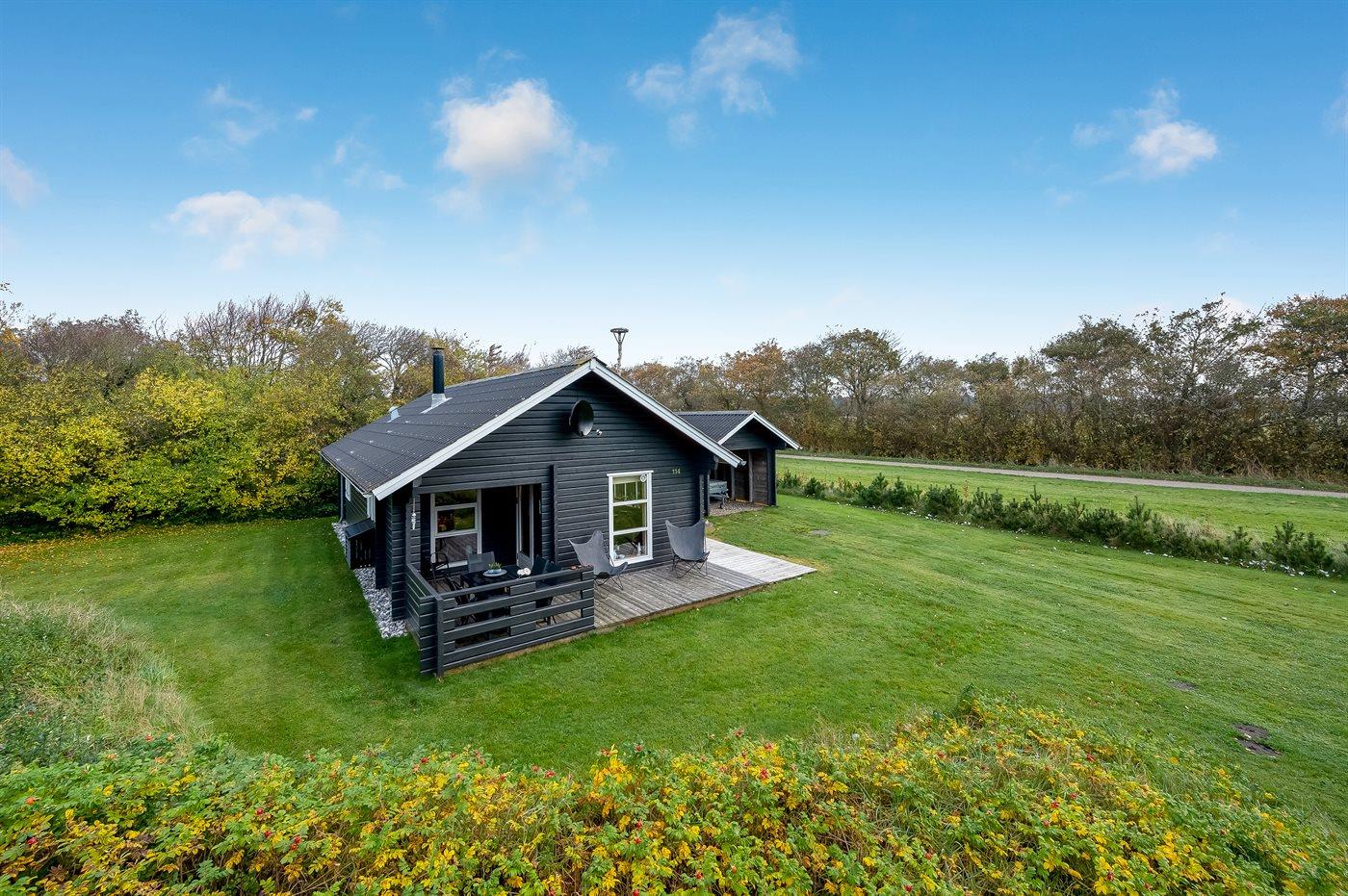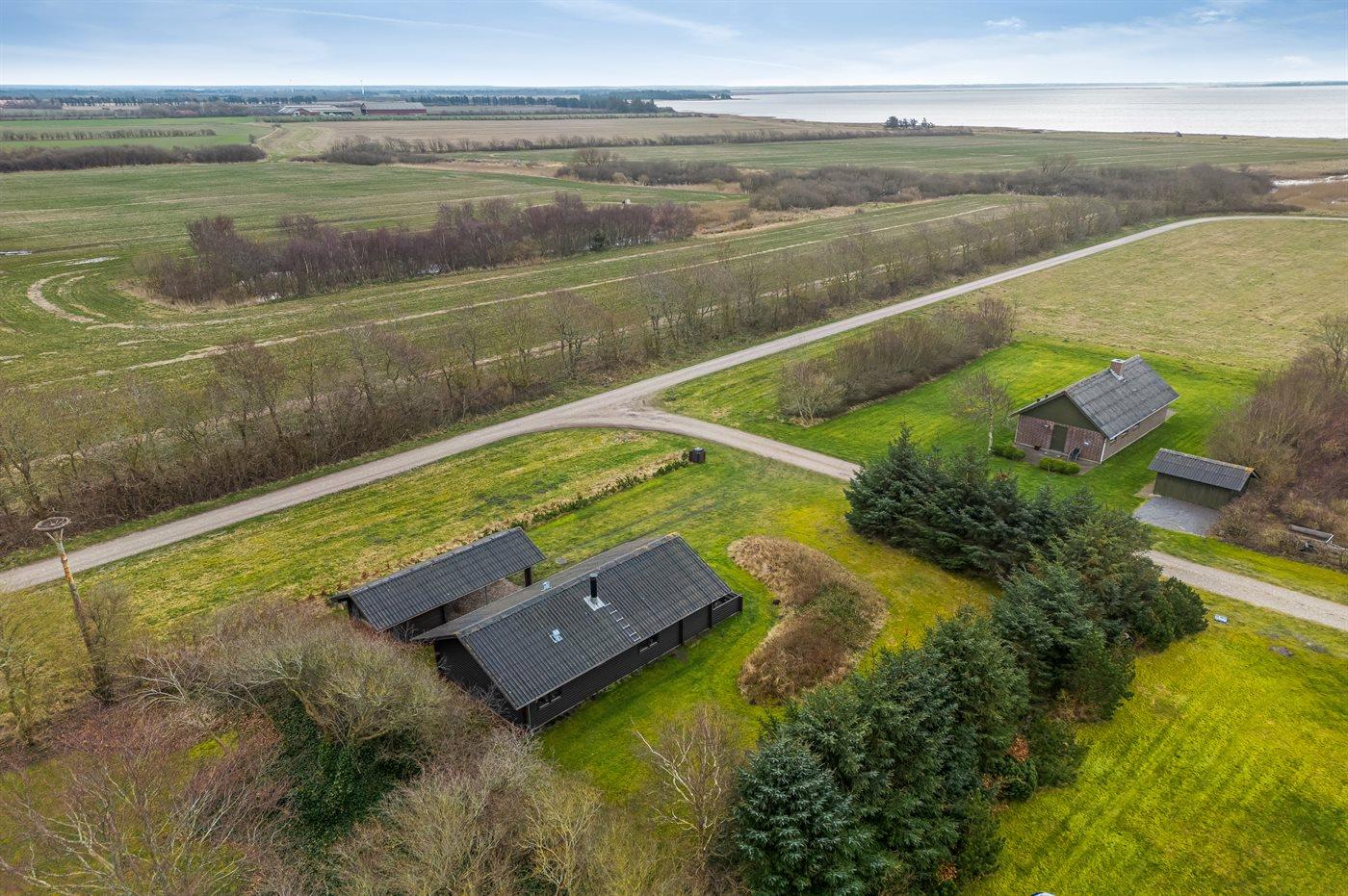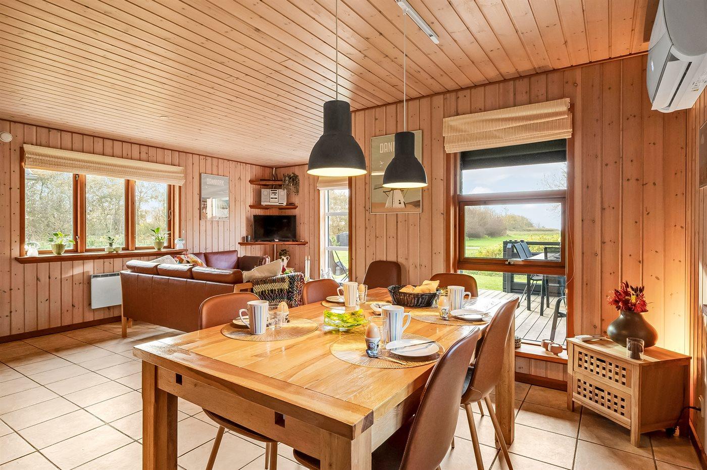 Hyggeligt bjælkehus med fjordudsigt, terrasse og fredeligt naturområde i Vemb.