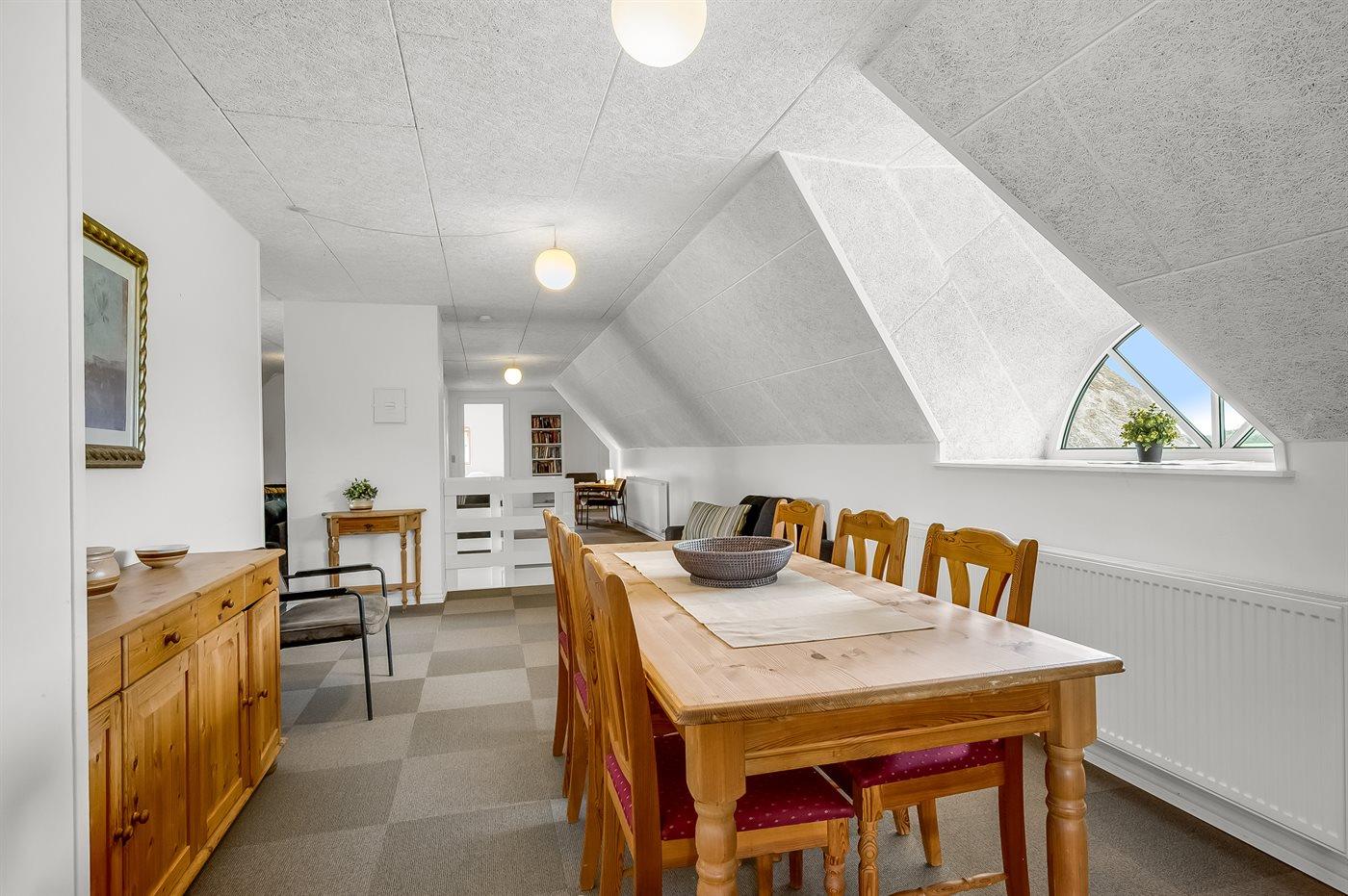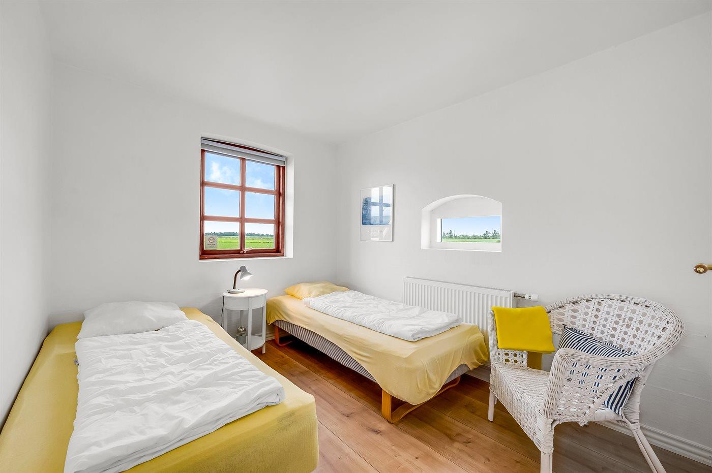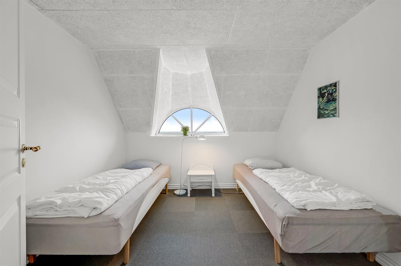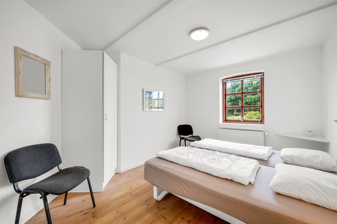 Der er i alt 10 soveværelser. Sovepladserne fordeler sig på: 8 sovepladser i dobbeltsenge. 14 sovepladser i enkeltsenge. Derudover er der 1 stk. barneseng.