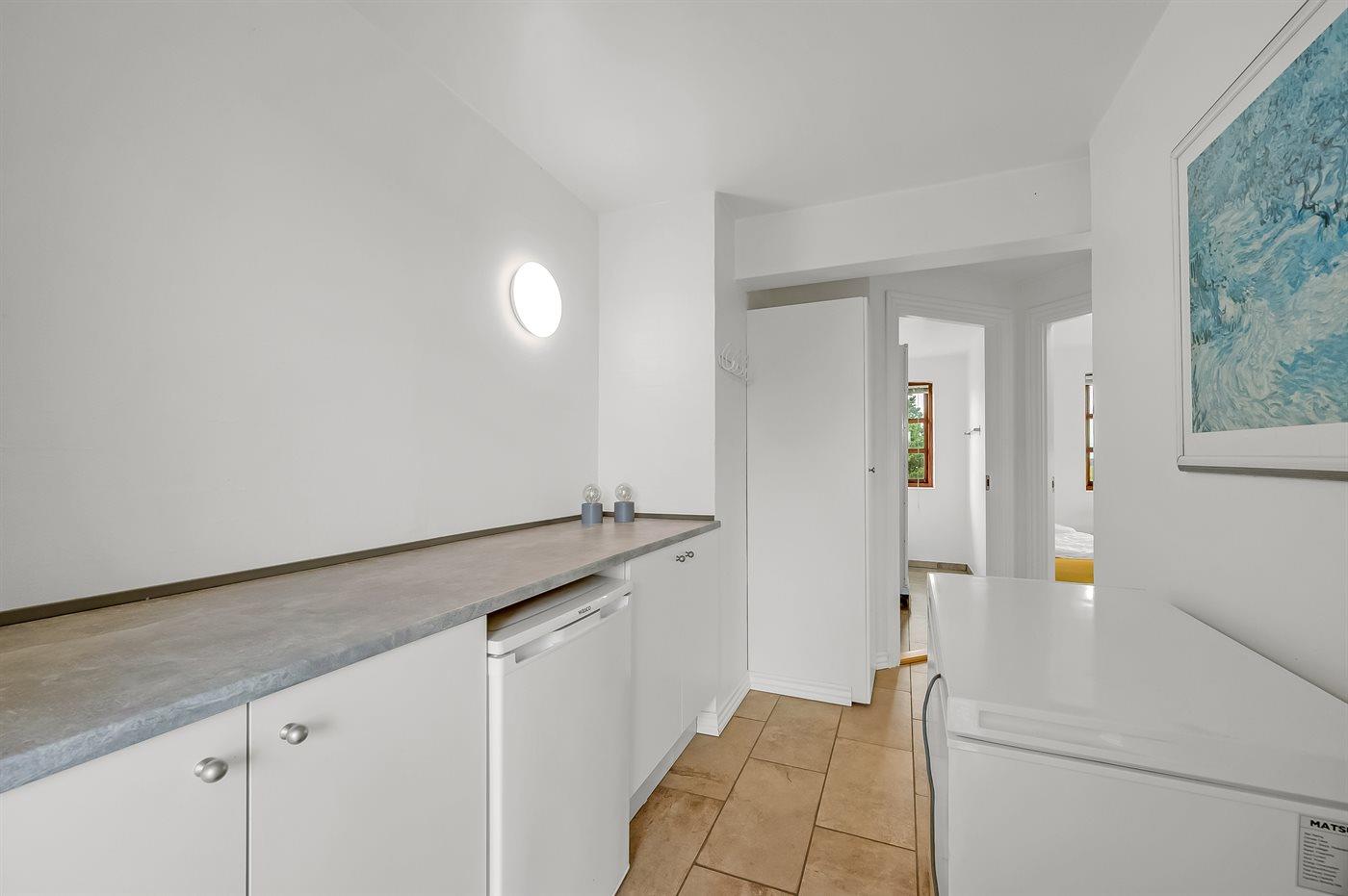 Køkkenet er udstyret med 2 køleskabe. Der er 8 keramiske kogeplader, 2 varmluftovne, mikrobølgeovn samt 2 opvaskemaskiner.