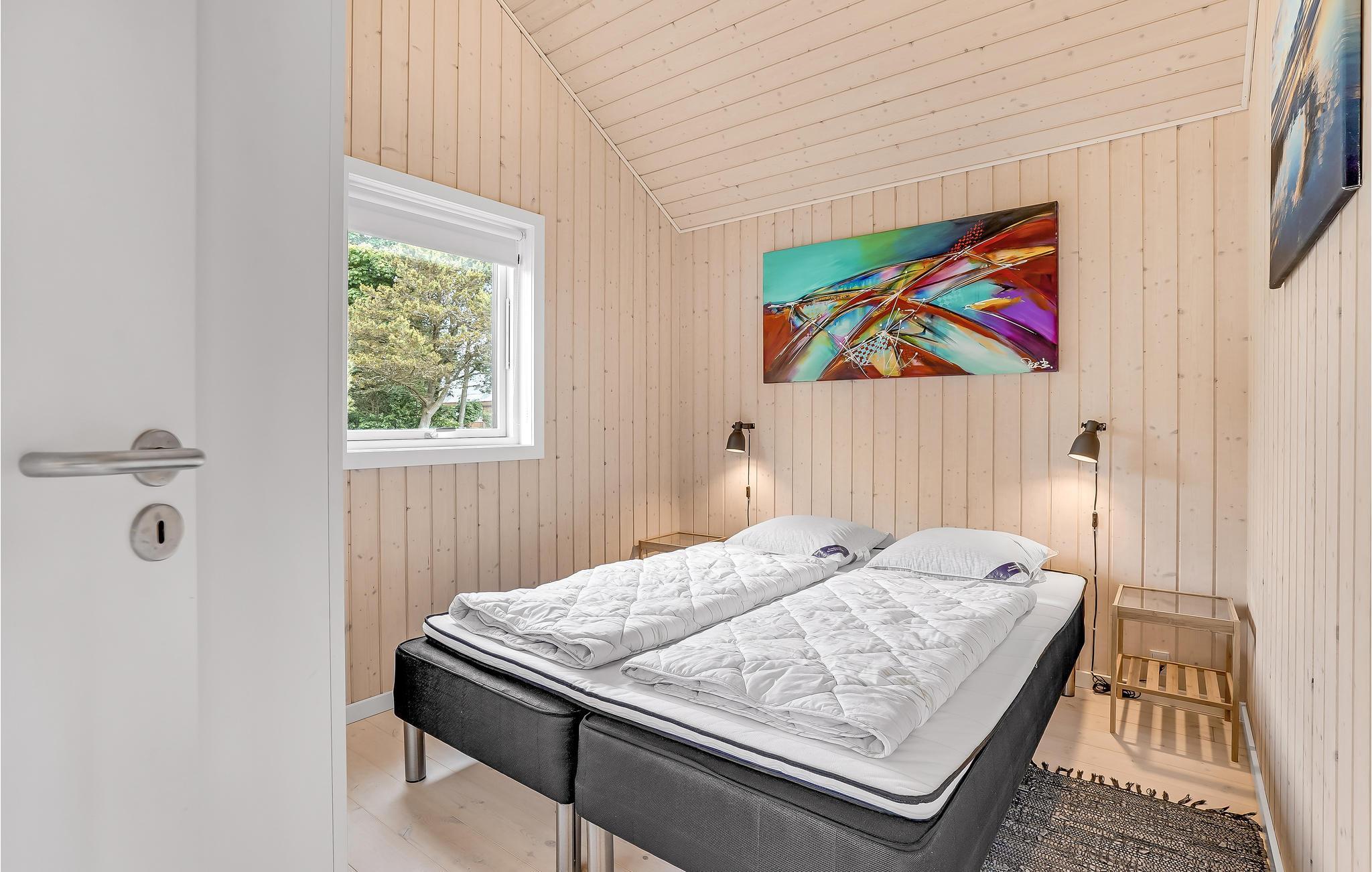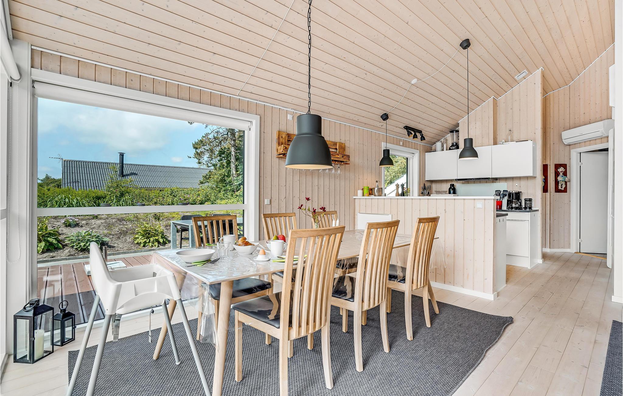Huset ligger i et roligt ferieområde kun et par hundrede meter fra fjorden. Inde i det smukke feriehus finder I tre soveværelser, et badeværelse og en smuk opholdsstue med åbent køkken samt en åben hems med to senge. Husets hjerte er den hyggelige opholdsstue, hvor I kan spise sammen eller slappe af ved brændeovnen.
