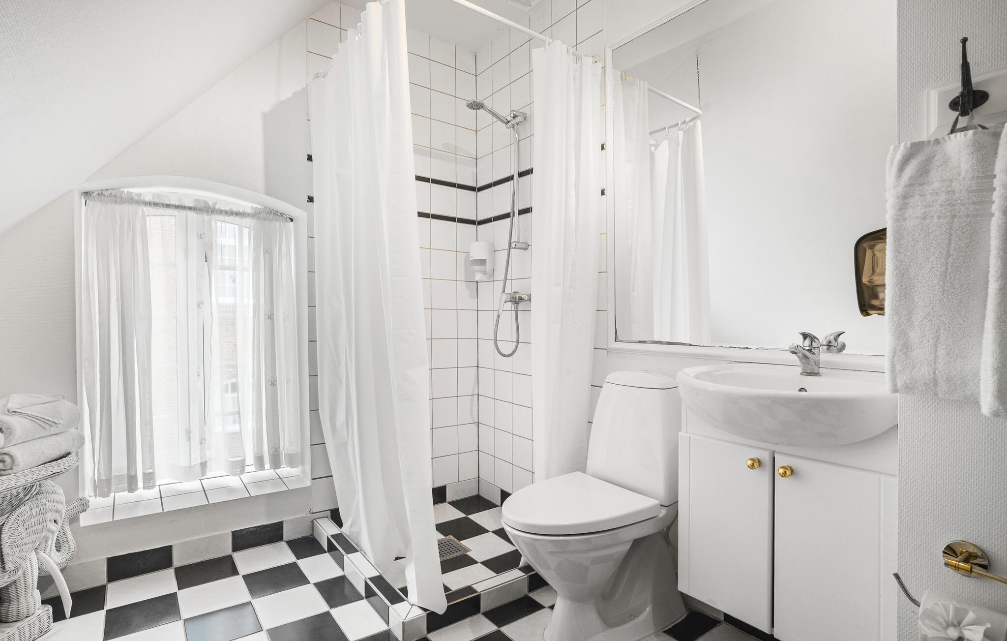 Badeværelse (nr. 1) - WC. Varmt og koldt vand. Bruser