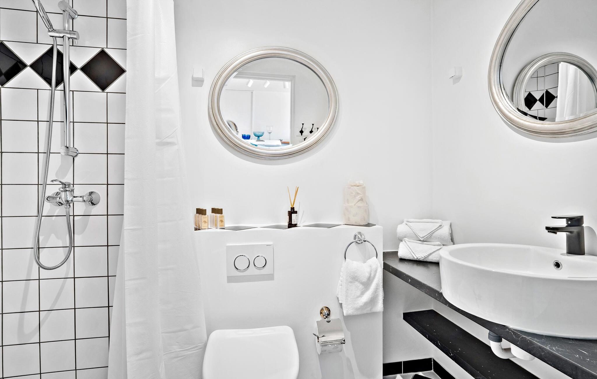 Badeværelse (nr. 1) - WC. Varmt og koldt vand. Bruser
