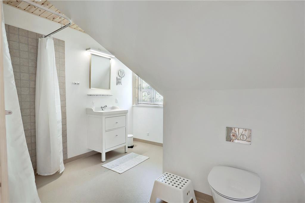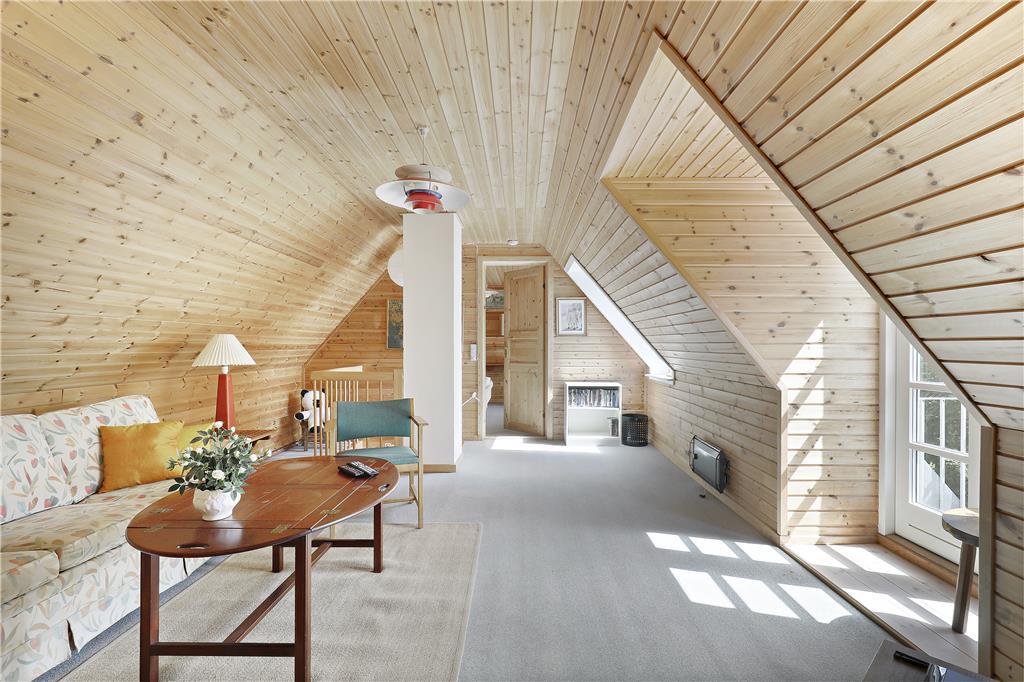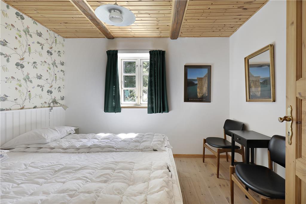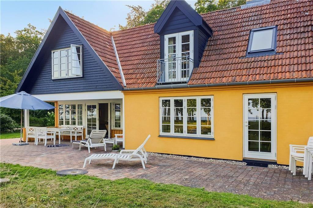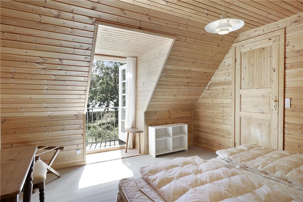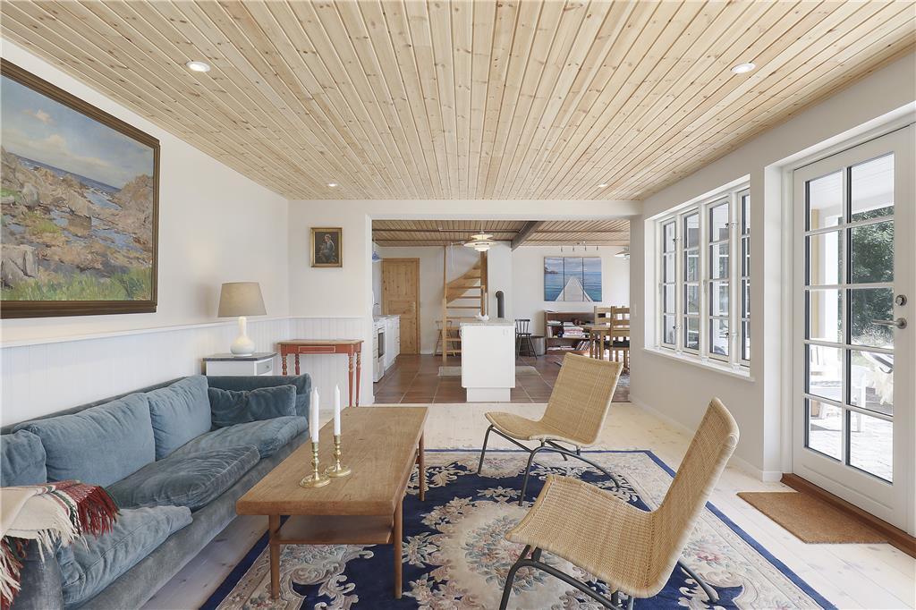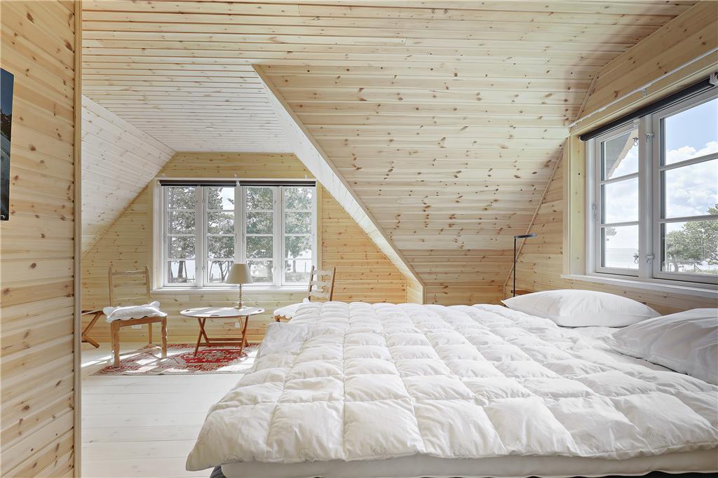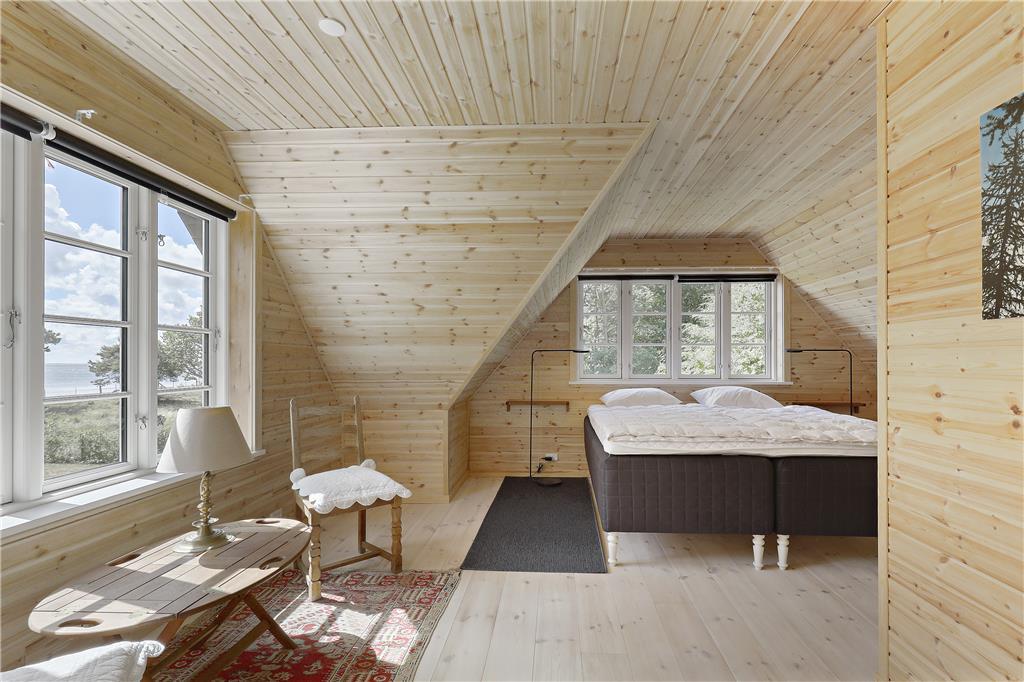 Der behøver ikke være kamp om de tre soveværelser, for de har alle udsigt til havet, og du kan såmænd ligge i sengen og både se og høre havets brusen lige uden for. Når du står op, kan du fra terrasserne på både 1. salen eller i stueplan indånde den friske havluft inden dagens første havbad. Fra både 1. salen og stueplan er der også første parket til udsigt til solopgangen og havet overalt, så det bliver svært at holde øjnene væk fra naturens panorama. Omkring spisebordet ved brændeovnen og det åbne køkken, kan du året rundt holde øje med havet, afvekslende med kort- og brætspil eller bare en god snak med vennerne og familien, eller et godt måltid mad. Kaffen kan I så passende tage med ovenpå og fortsat kikke ud mod bugten, inden dagen går på hæld.