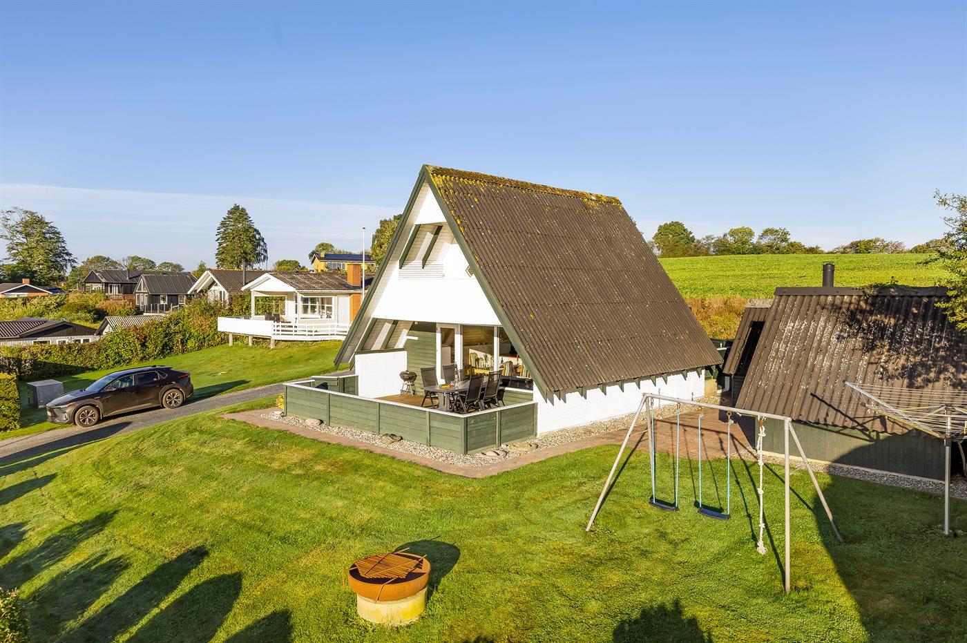 Hyggeligt sommerhus med havudsigt og tæt på børnevenlig strand i Skarrev, Aabenraa.