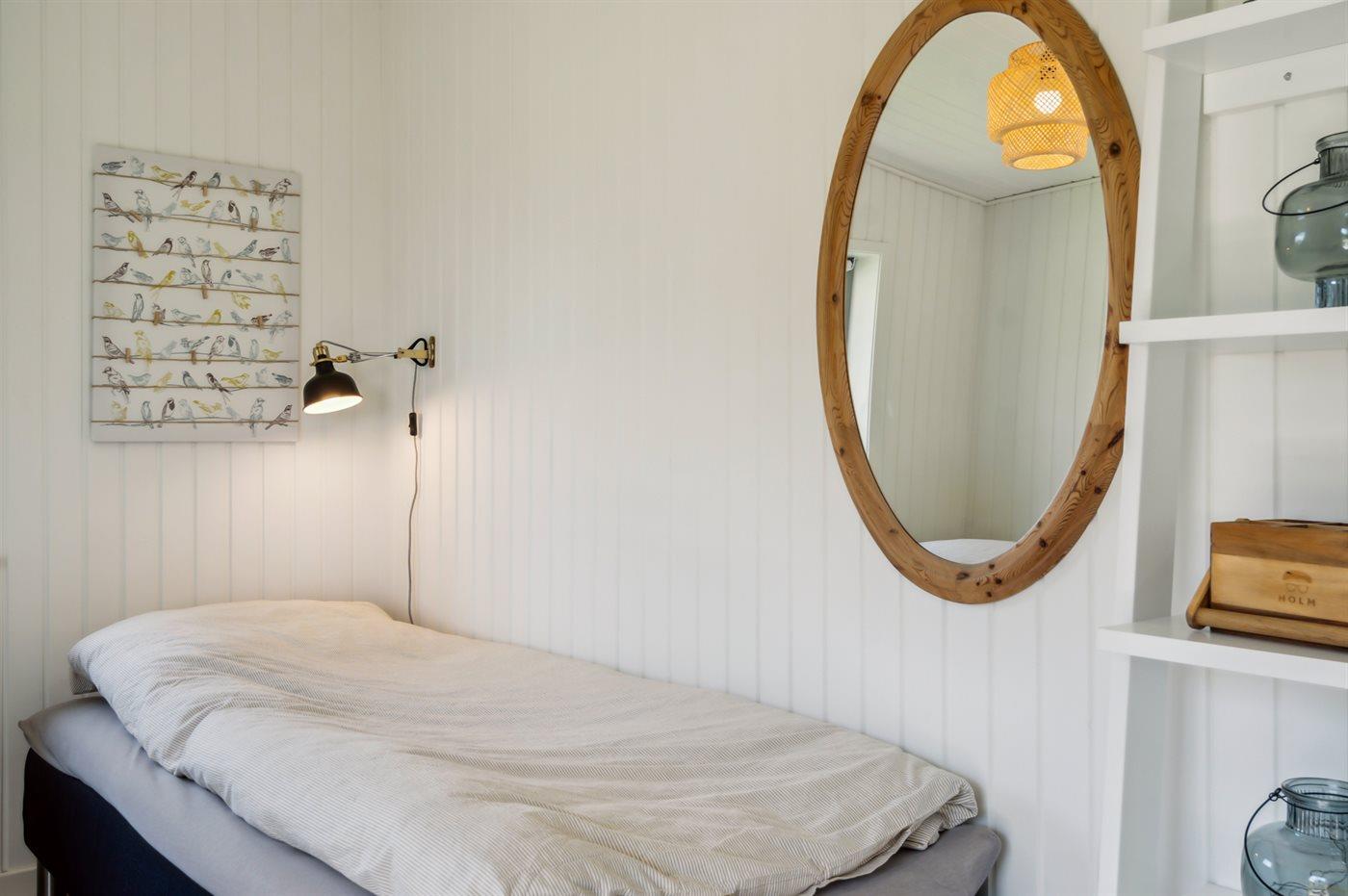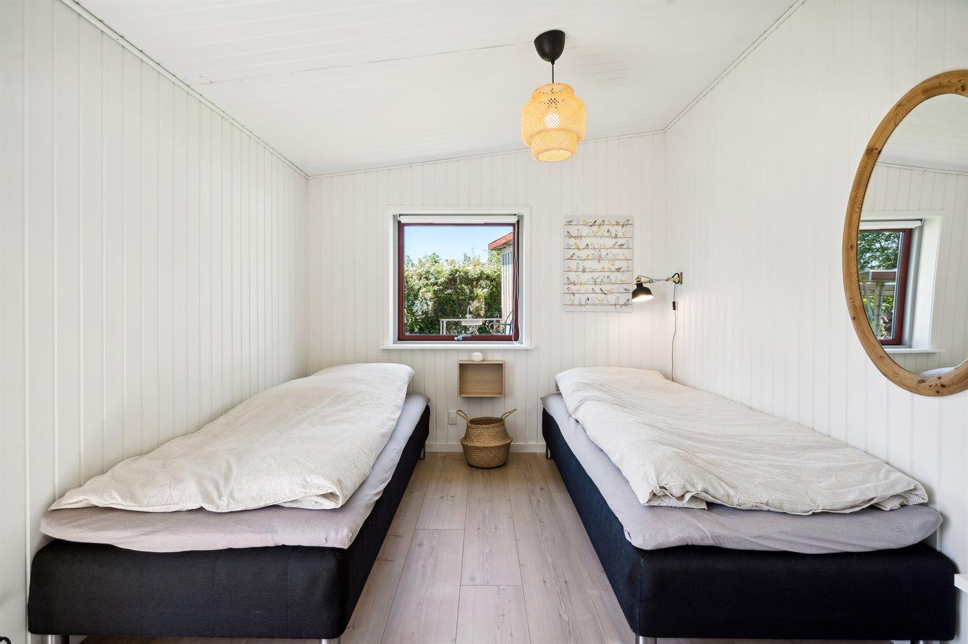 Der er i alt 2 soveværelser. Sovepladserne fordeler sig på: 2 sovepladser i dobbeltseng. 2 sovepladser i enkeltsenge. 2 sovepladser i sovesofa (dobbelt). 2 af disse sovepladser befinder sig i stuen. Derudover er der 1 stk. barneseng.