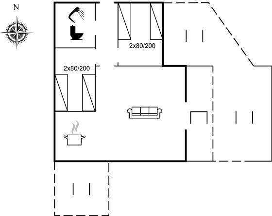 Der er i alt 2 soveværelser. Sovepladserne fordeler sig på: 4 sovepladser i enkeltsenge. Derudover er der 1 stk. barneseng.