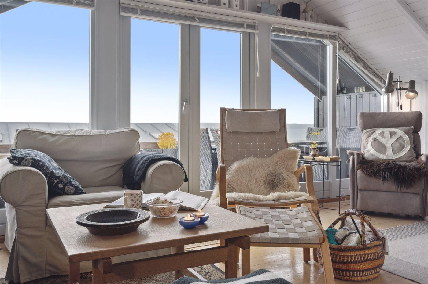 Med en fantastisk udsigt over vandet, i det skønne og kuperede område ved Skarrev, ligger dette hyggelige, ældre sommerhus, som er moderniseret i 2014.