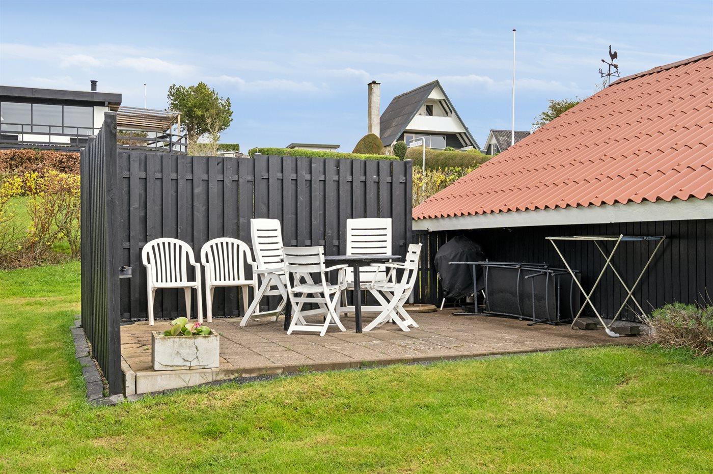 Ferieboligen er beliggende på en 650 m² stor havegrund. Der er 400 m til havet. Nærmeste forretning er beliggende i en afstand af 5000 m. Der er en golfbane i en afstand af 8000 m. Til ferieboligen hører åbent terrasseareal. Desuden er der overdækket terrasse. Grill til rådighed. Parkering ved ferieboligen.
