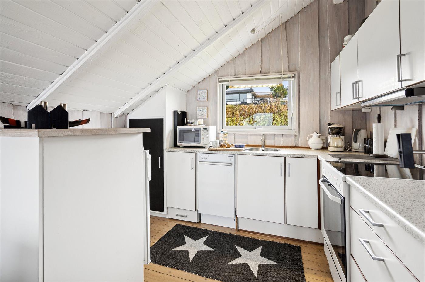 Køkkenet er udstyret med 1 køleskab. Der er 4 keramiske kogeplader, varmluftovn, mikrobølgeovn samt opvaskemaskine.
