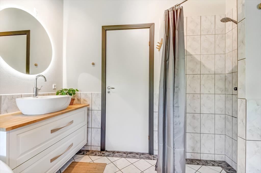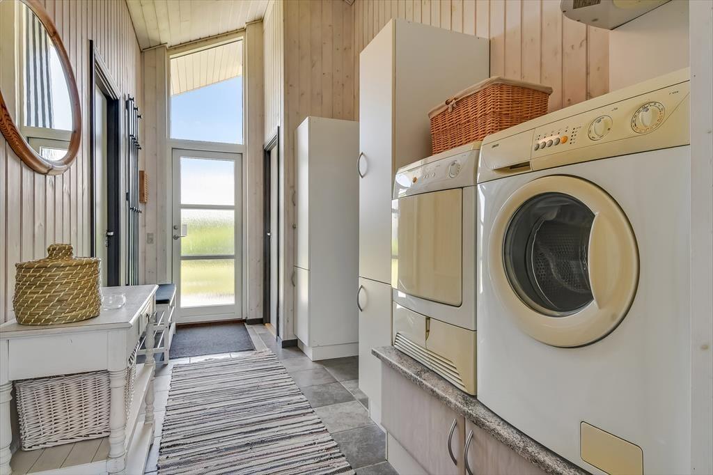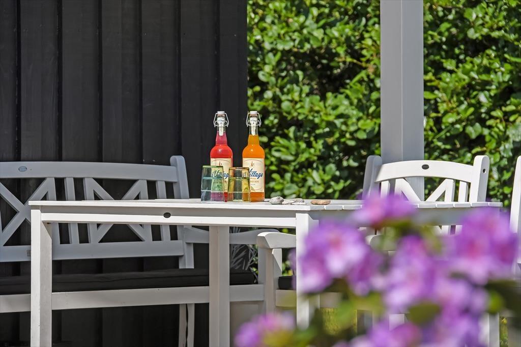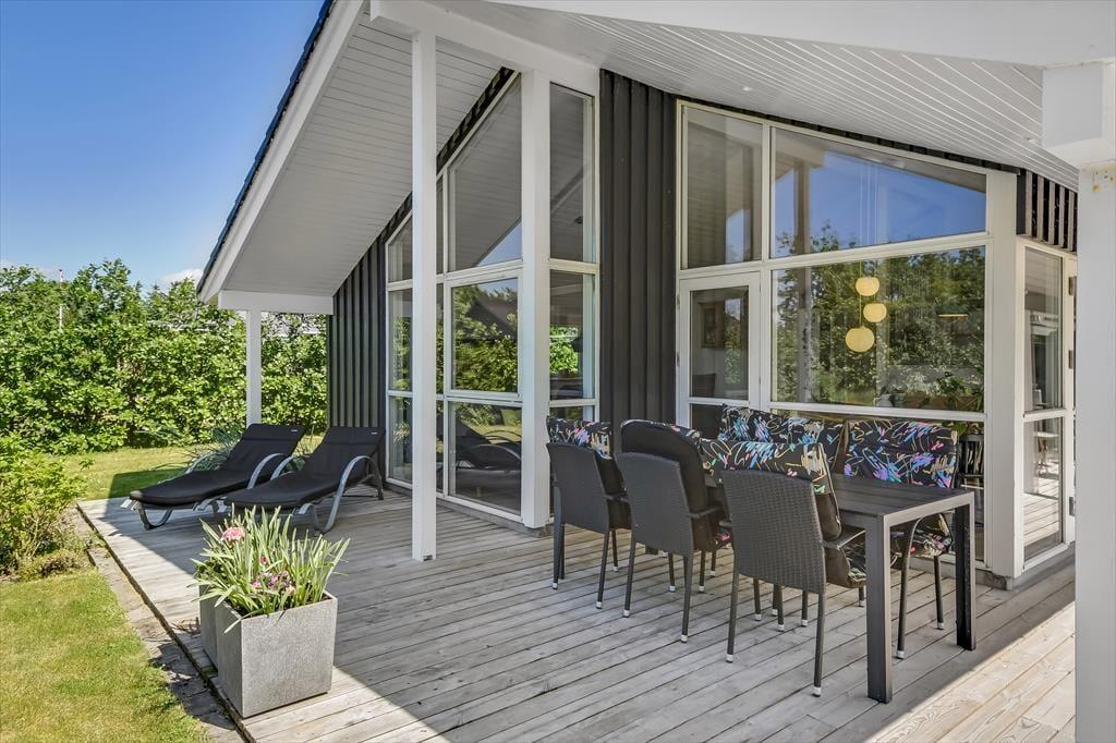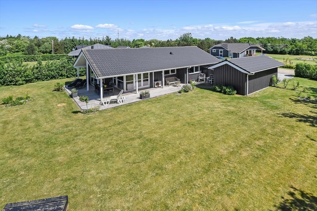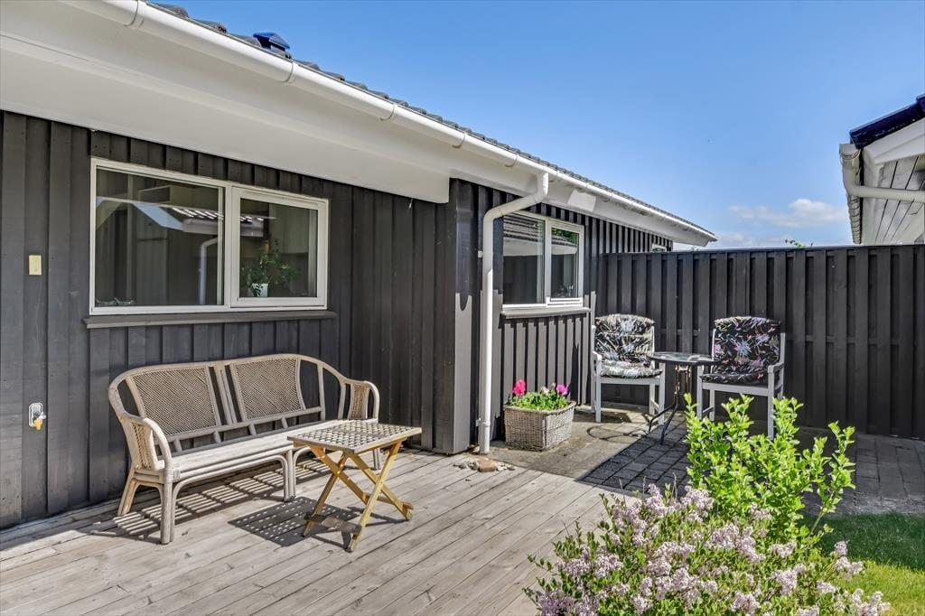 Rundt om sommerhuset breder flere dejlige terrasser sig, så det er ingen sag at finde en dejlig opholdsplads med skygge eller sol alt efter dit humør. Fra den sydvestvendte og delvist overdækkede terrasse har du et godt overblik over baghaven, hvor børnene kan gynge, hoppe på trampolin og lege i sandkassen – og hvis de kan overtale de voksne til en dyst i vikingespil, kan I alle vise, hvad I dur til på græsplænen. Til bilen er der carport, og der er også plads i den grusbelagte indkørsel, hvis I har inviteret bedsteforældre eller venner med på ferie.
