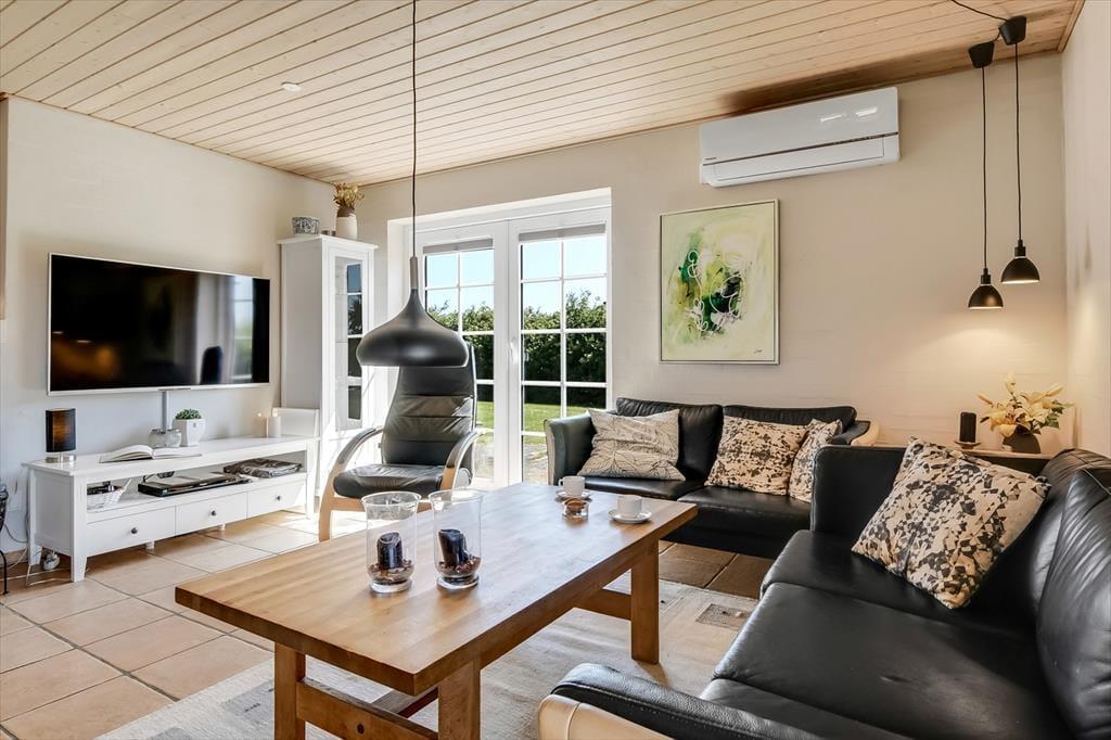 Indenfor vil du straks mærke sommerhusets varme og hyggelige atmosfære. Stuen fungerer som et naturligt samlingspunkt, hvor familien kan samles omkring brætspil, film eller hyggelige samtaler, mens duften fra køkkenet og en kop varm kakao eller et glas vin fuldender stemningen. Det åbne køkken gør det nemt at lave mad sammen, og de behagelige møbler inviterer til afslapning efter en dag ved fjorden. Sommerhusets soveværelser indbyder til rolig søvn, hvor du kan trække dig tilbage og vågne frisk til fuglesang udenfor. Spaen og saunaen giver mulighed for total forkælelse, og uanset vejret udenfor vil sommerhuset altid føles som et dejligt sted at samles og skabe minder sammen.