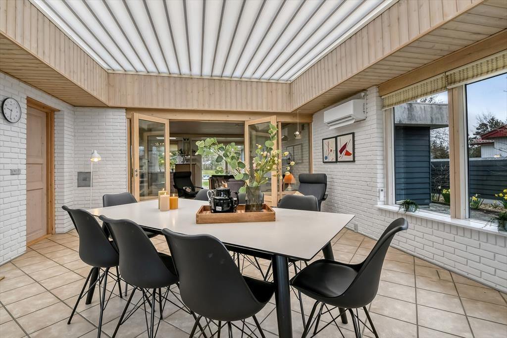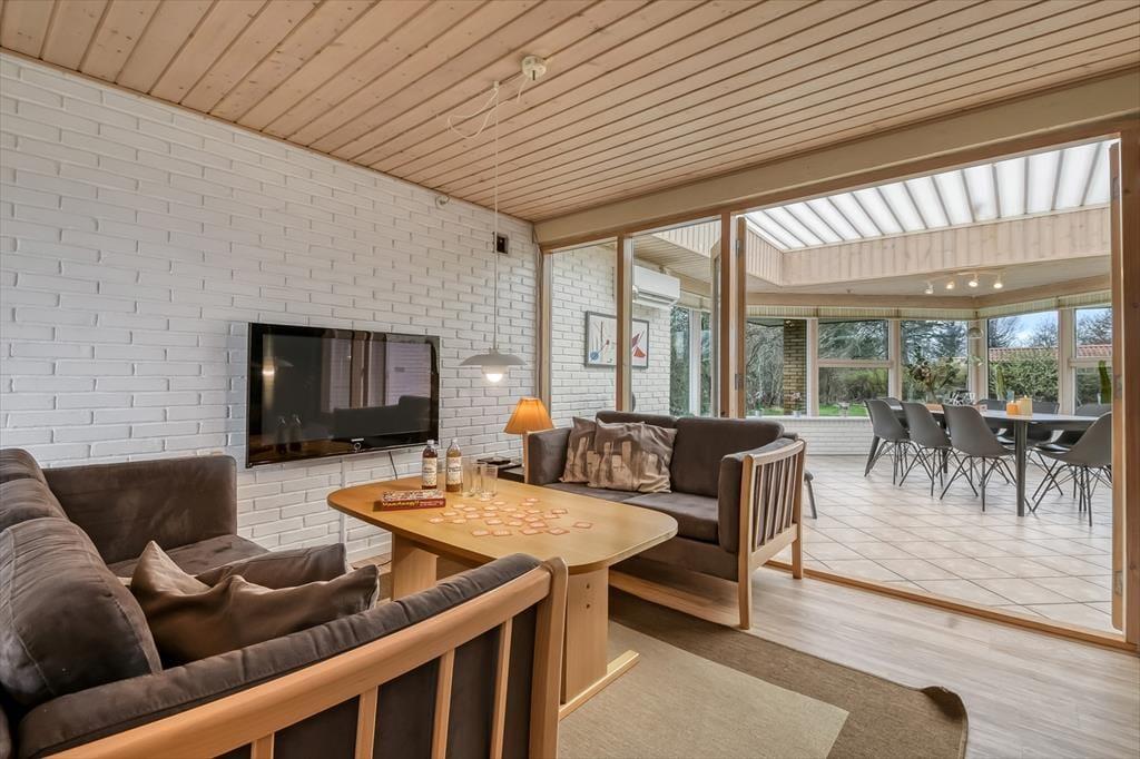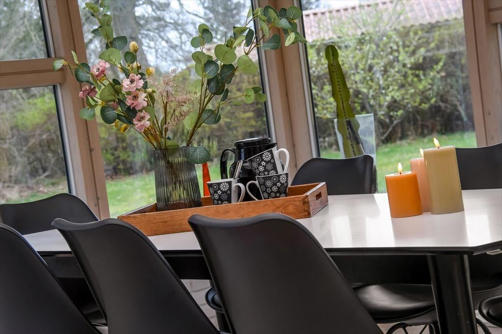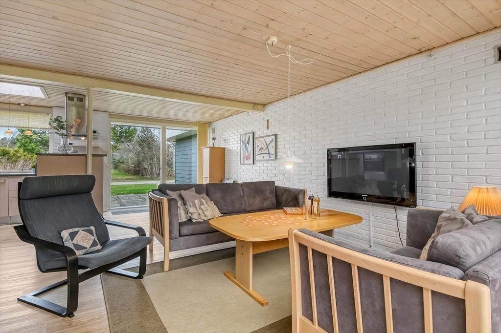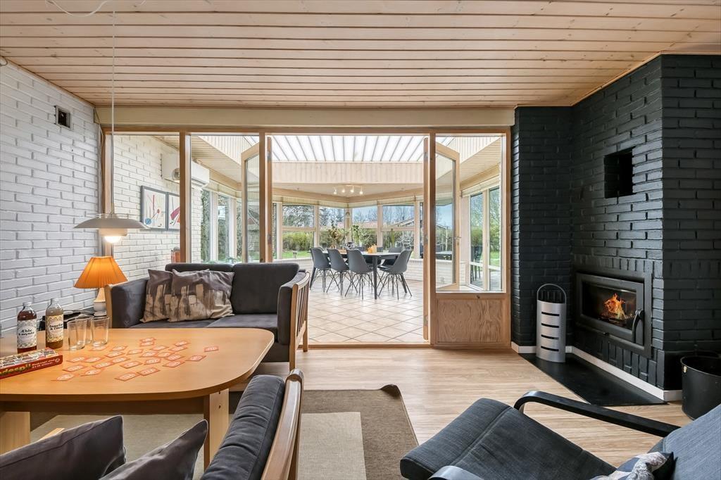 Når du træder indenfor i sommerhuset, bliver du mødt af en afslappet og hyggelig stemning, der straks får dig ned i gear. Her er god plads til samvær i det store opholdsrum, hvor stue og køkken ligger i åben forbindelse. Duften af morgenkaffe breder sig hurtigt i rummet, og når brændeovnen knitrer i baggrunden, bliver atmosfæren ekstra lun og hjemlig. Når solen titter frem, lokker havestuen med sin varme og sit skønne lys – det perfekte sted til et spil kort, en god bog eller bare ro og nærvær. Sommerhuset har flere gode sovepladser, så både familien og vennerne kan tage del i ferien, og alt er indrettet med tanke på, at I skal føle jer hjemme fra første øjeblik.