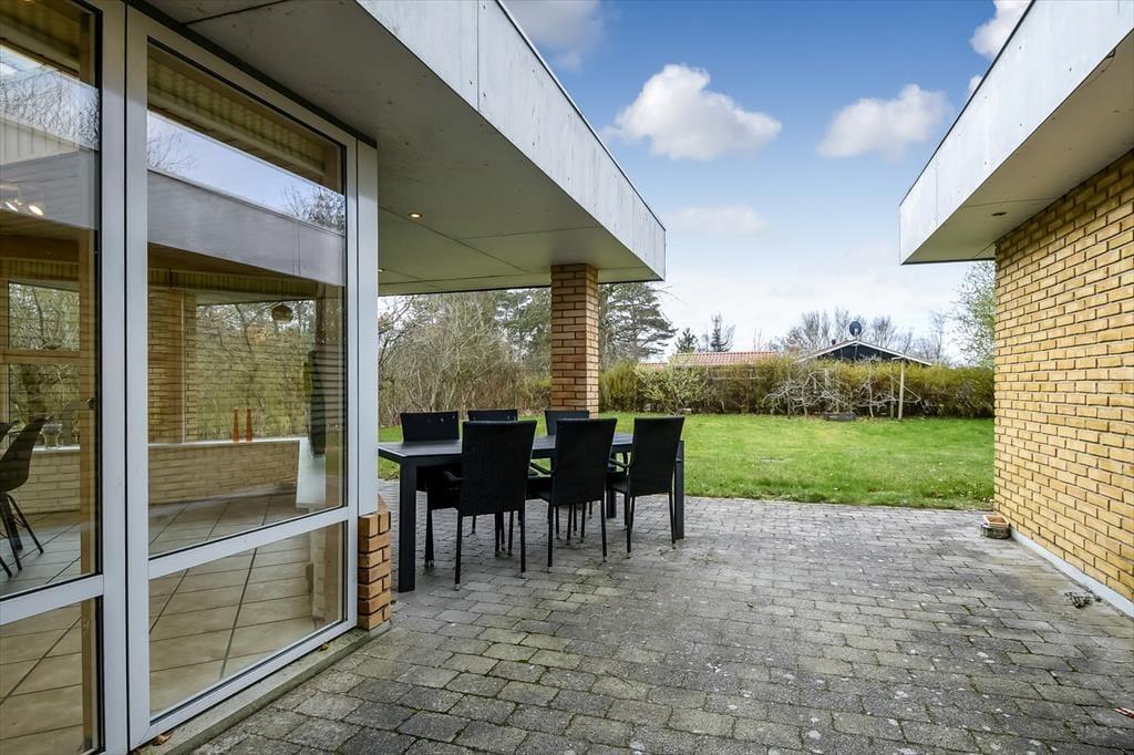 Rundt om huset breder haven sig som en grøn oase, hvor træer og buske skærmer jer af og giver fred til at nyde feriedagene i eget tempo. Her kan børnene lege frit, mens de voksne finder en god stol i solen eller fordyber sig i samtaler over en kop eftermiddagskaffe. Terrassen indbyder til lange middage i sommeraftenernes lune skær, og når duggen falder, er det let at trække sig tilbage til havestuen og fortsætte hyggen dér. Alt omkring huset signalerer ro og privatliv – og det er netop det, der gør denne grund så særlig. Du mærker det i vinden, der suser blidt i trækronerne, og i stilheden, der kun brydes af fuglesang og latter fra haven.