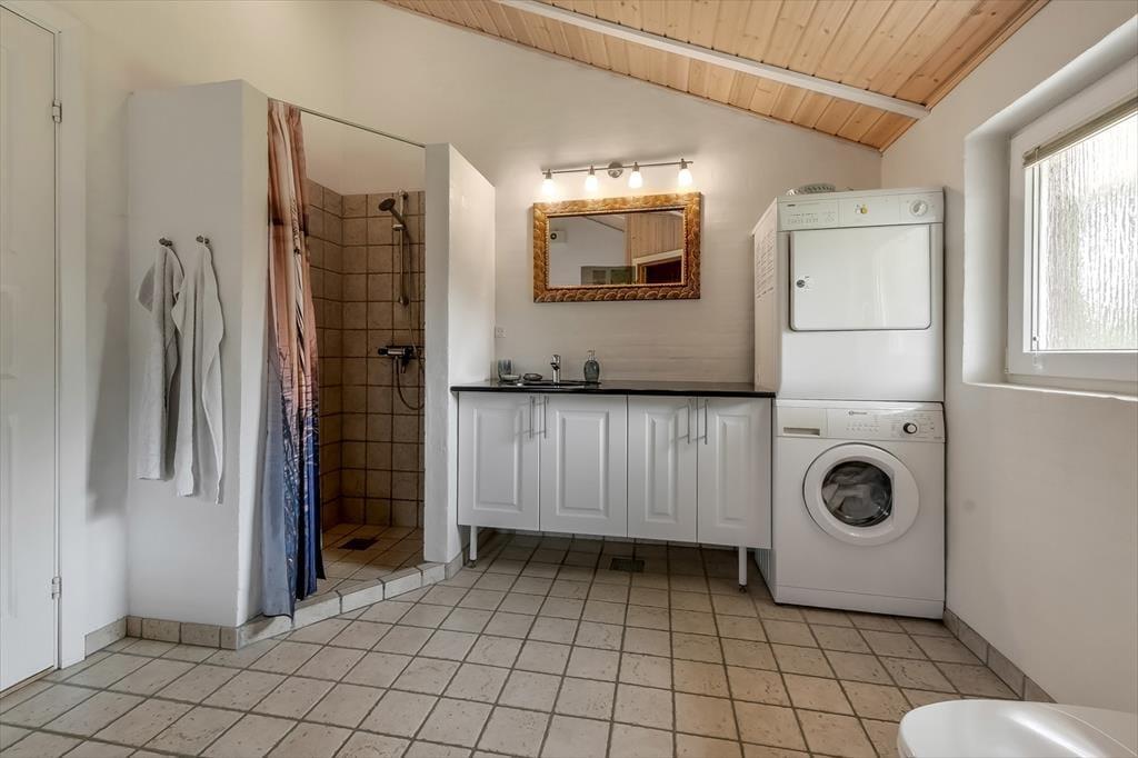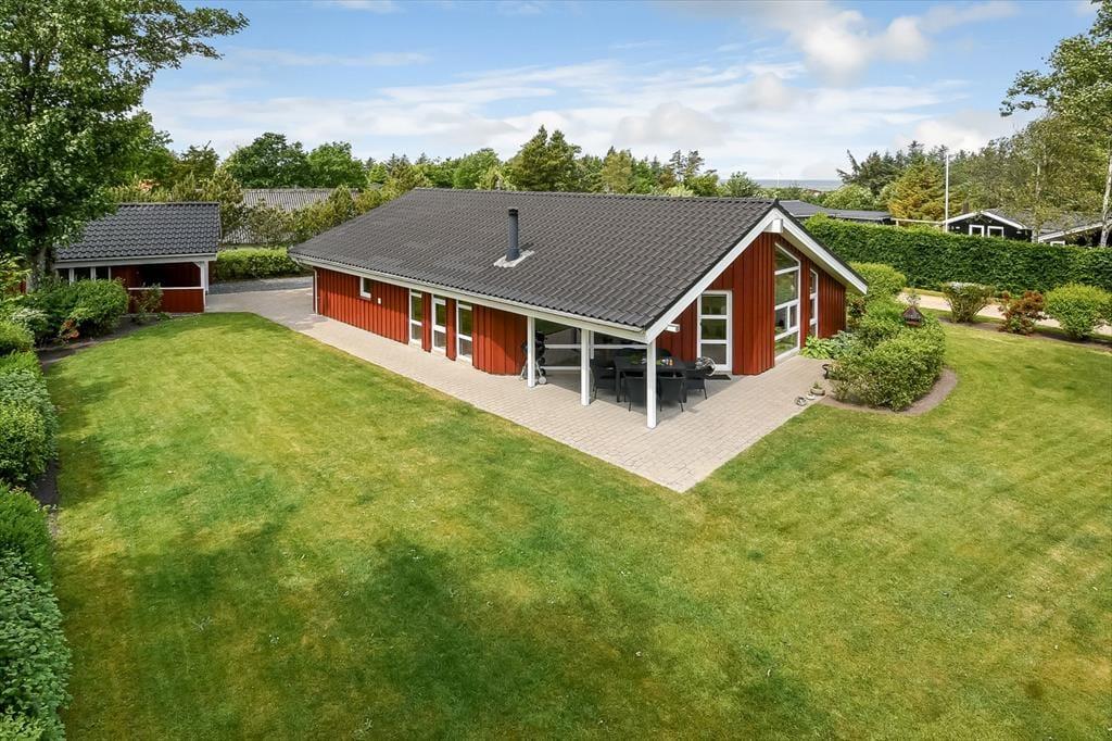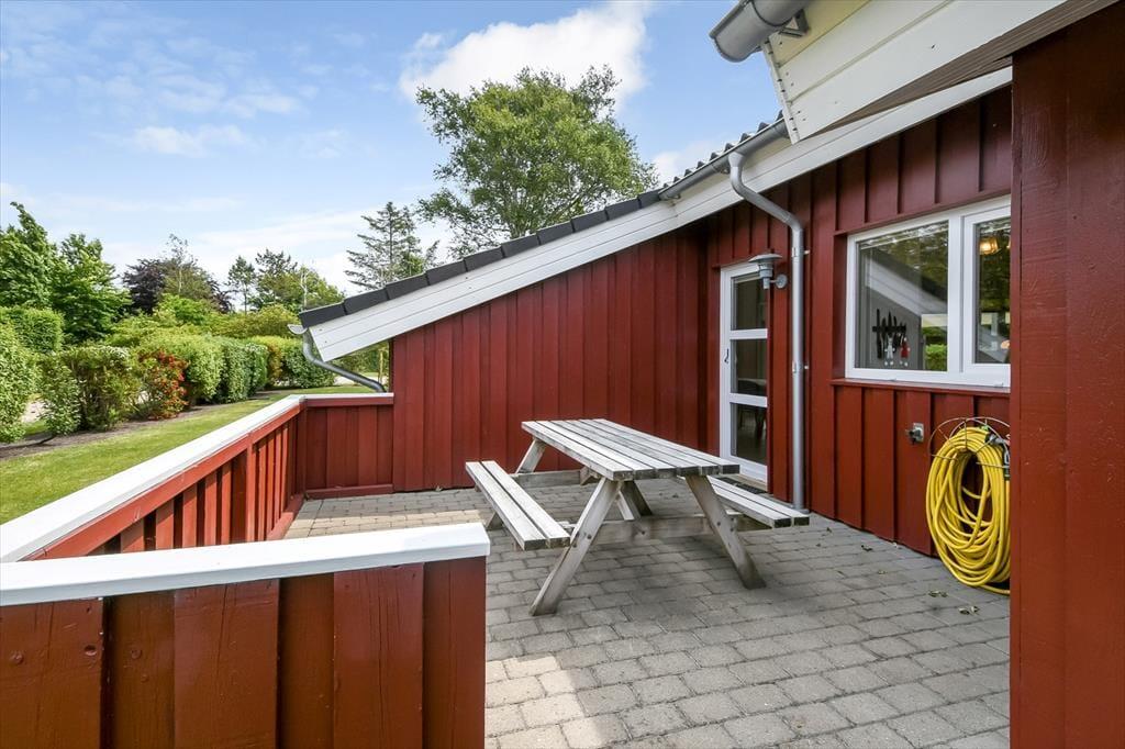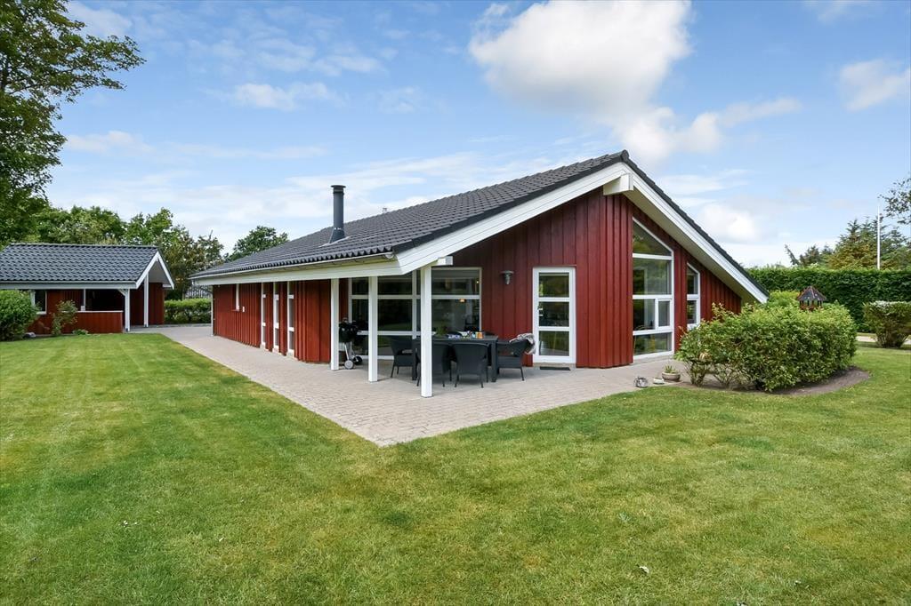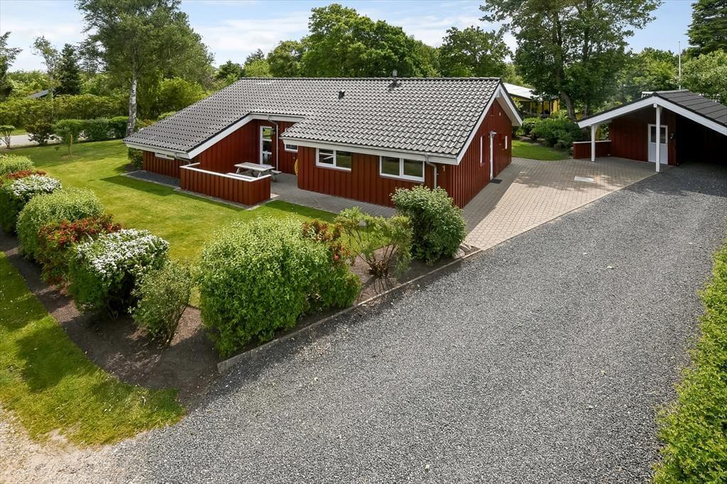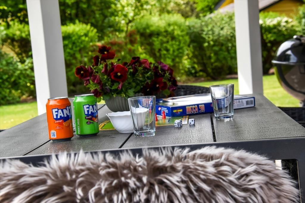 På husets træterrasse er der rig mulighed for at tage ferien i jeres helt eget tempo. Terrassen er delvist overdækket, så I både kan søge skygge på de varmeste sommerdage og forlænge de lune aftener med tæpper og levende lys, når duggen falder. Havemøblerne står klar til morgenkaffen og frokosten i solen, og både børn og hunde vil elske at tumle rundt på græsplænen, mens du nyder udsigten over den rolige have. Her er fred og ro, fuglekvidder og højt til himlen – og så tæt på fjorden, at du næsten kan fornemme den salte brise, når du lukker øjnene og trækker vejret dybt. Alt sammen danner rammen om det gode udendørsliv, som kendetegner feriedagene i Skaven Strand.