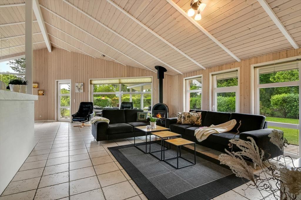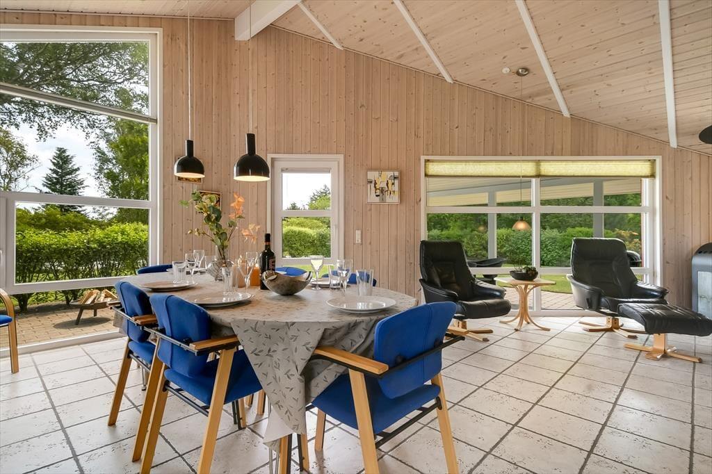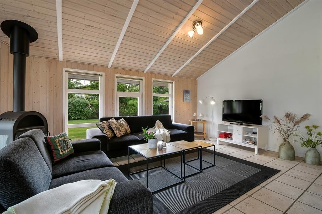 Når du træder indenfor i sommerhuset, møder du et lyst og venligt leverum med en rar og afslappet atmosfære. Her er god plads til at være sammen – uanset om det handler om morgenmad ved spisebordet, kortspil i sofahjørnet eller fælles madlavning i det åbne køkken. Opholdsrummet fungerer som feriehjertets samlingspunkt, og det er nemt at forestille sig lange samtaler, hyggelige filmstunder og grinende børn, der bygger hule i hjørnet. De komfortable soveværelser indbyder til rolige nætter efter en aktiv dag i det fri, og hele huset er præget af varme detaljer, der skaber en hjemlig og uformel stemning. Her kan I være sammen – og hver for sig – alt efter, hvad dagen og humøret bringer.