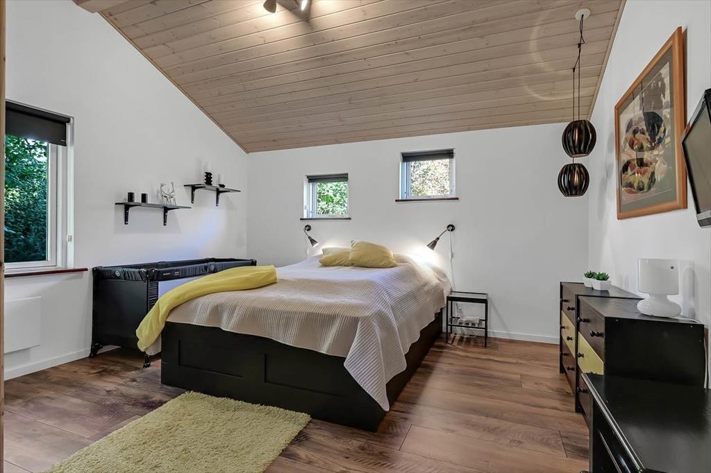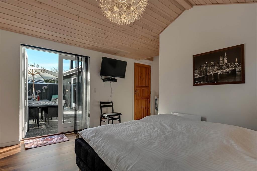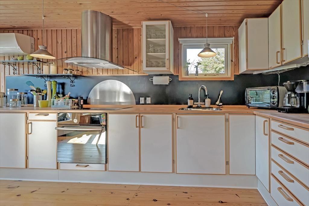 Køkken og stue ligger i åben forbindelse, så snakken uhindret flyder mellem dem, der laver mad, og dem, der slapper af i sofaen. Uanset om I er afsted som familie eller som et vennepar, giver den gode rumfornemmelse og den varme indretning en helt særlig ro, der får tempoet til at falde og feriestemningen til at tage over.