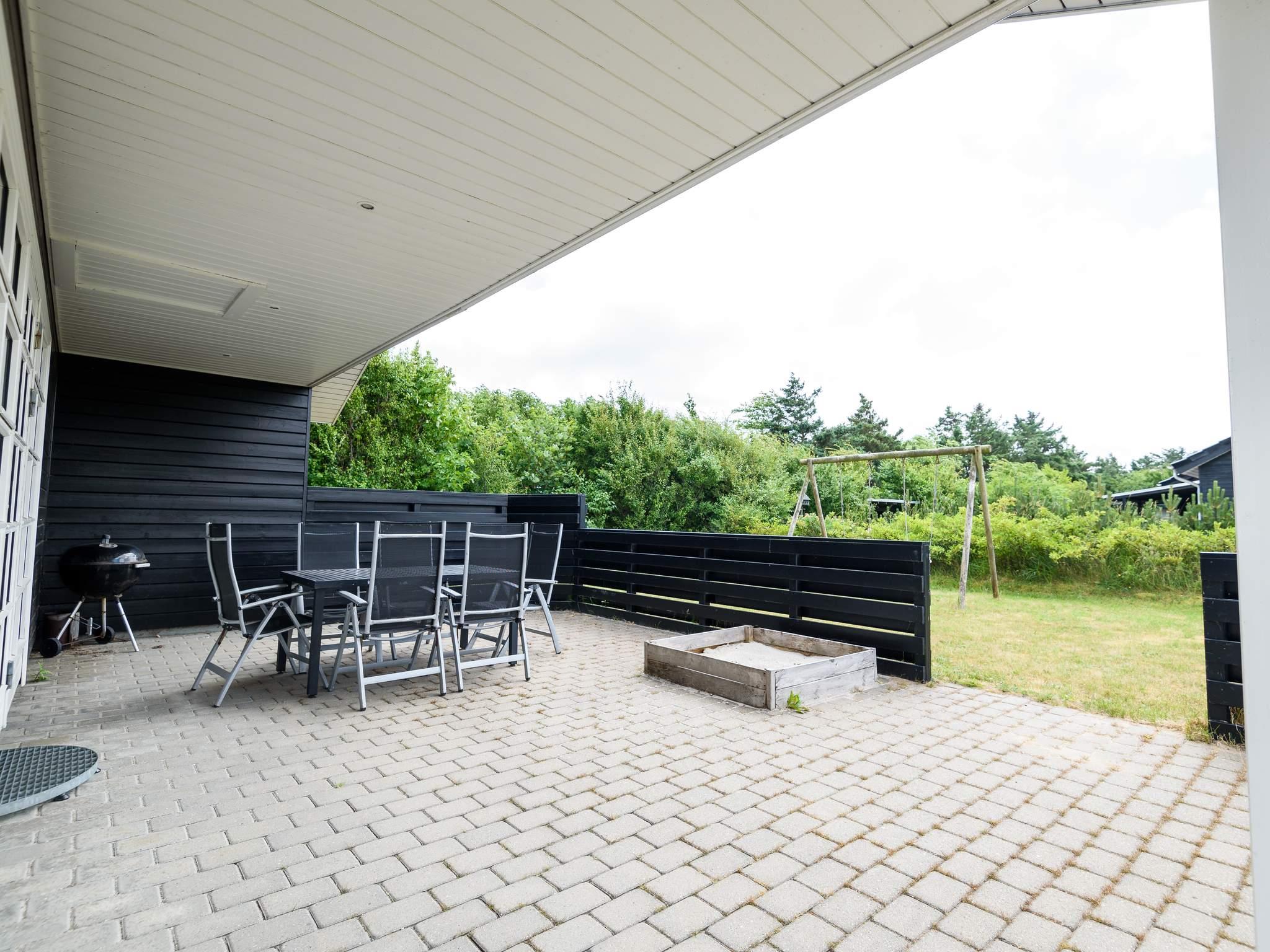 Moderne og lyst sommerhus nær Skaven Strand med sauna, spa og flere terrasser på stor naturgrund.