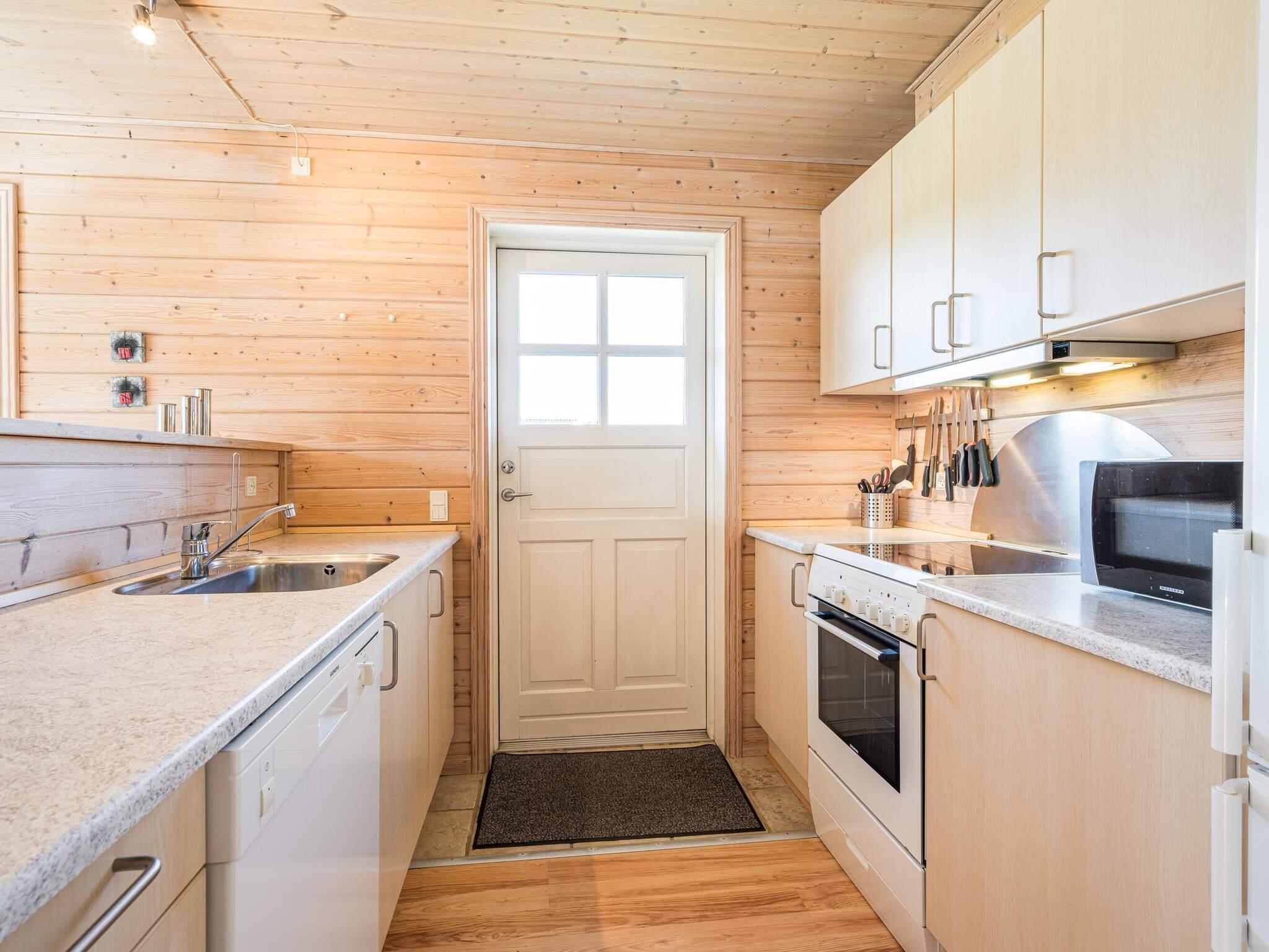 På dejlig stor grund, har vi her et moderne lyst og venligt fritidshus. Huset er overalt beklædt med lyst træ og gulvene er også af træ - dette er med til at give den helt rette sommerhus stemning. Køkkenet, som også er i lyst moderne træ,ligger i åben forbindelse med stuen, hvor brændeovnen også er placeret. Fra stuen er der direkte udgang til flere terrasser, som er alle er flisebelagt. Et hus hvor alt er enkelt indrettet, således der altid er plads til hvad man medbringer. Gratis slutrengøring!