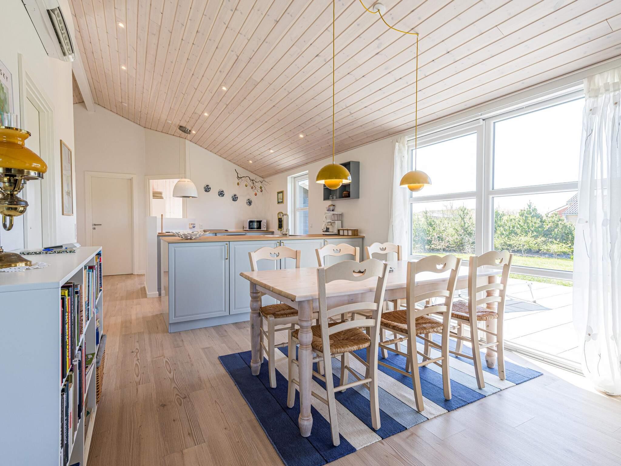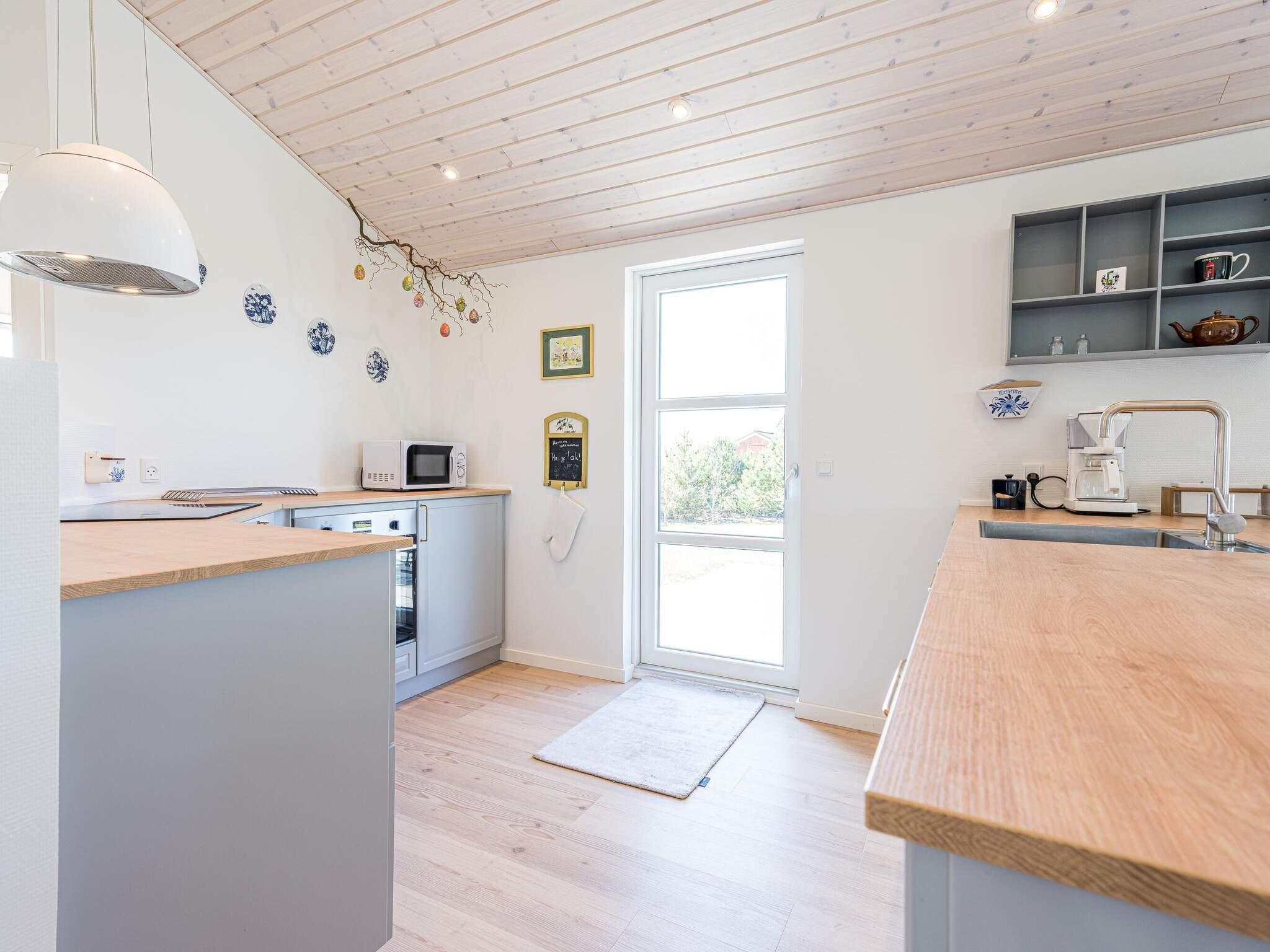 Det velindrettede køkken i sommerhuset byder på masser af plads og mulighed for at forkæle dine gæster med lækre feriemåltider. Den indbyggede opvaskemaskine sikrer mere tid til hygge, og med direkte udgang til en af ??husets terrasser er udeservering og grill nærmest givet, når vejret tillader det.