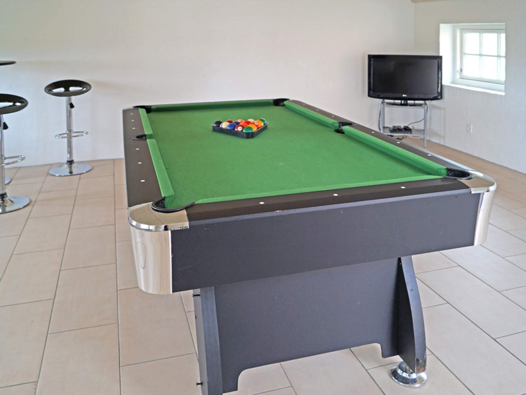 Huset har et 50 m² stort aktivitetsrum med billard og fladskærms-tv med parabol.