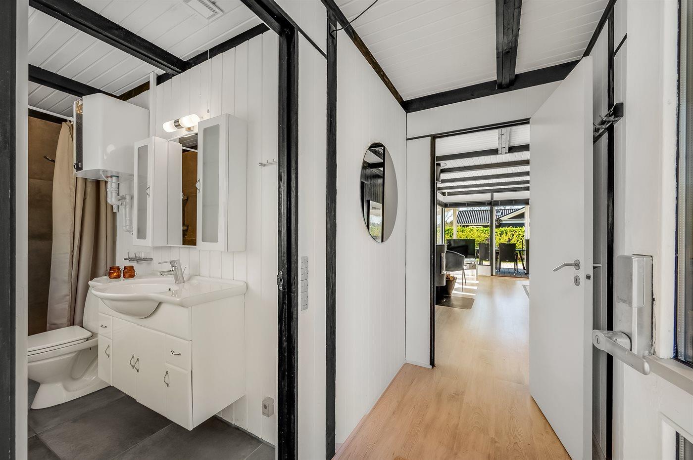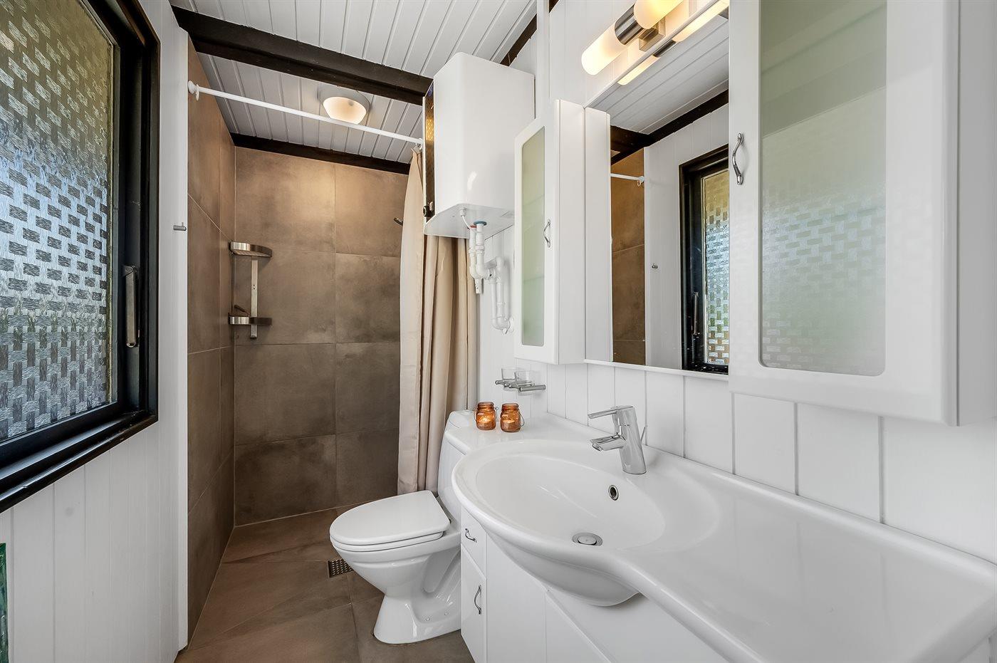Der er 1 badeværelse med bruser og 1 toilet.. Der er gulvvarme på 1 badeværelse.