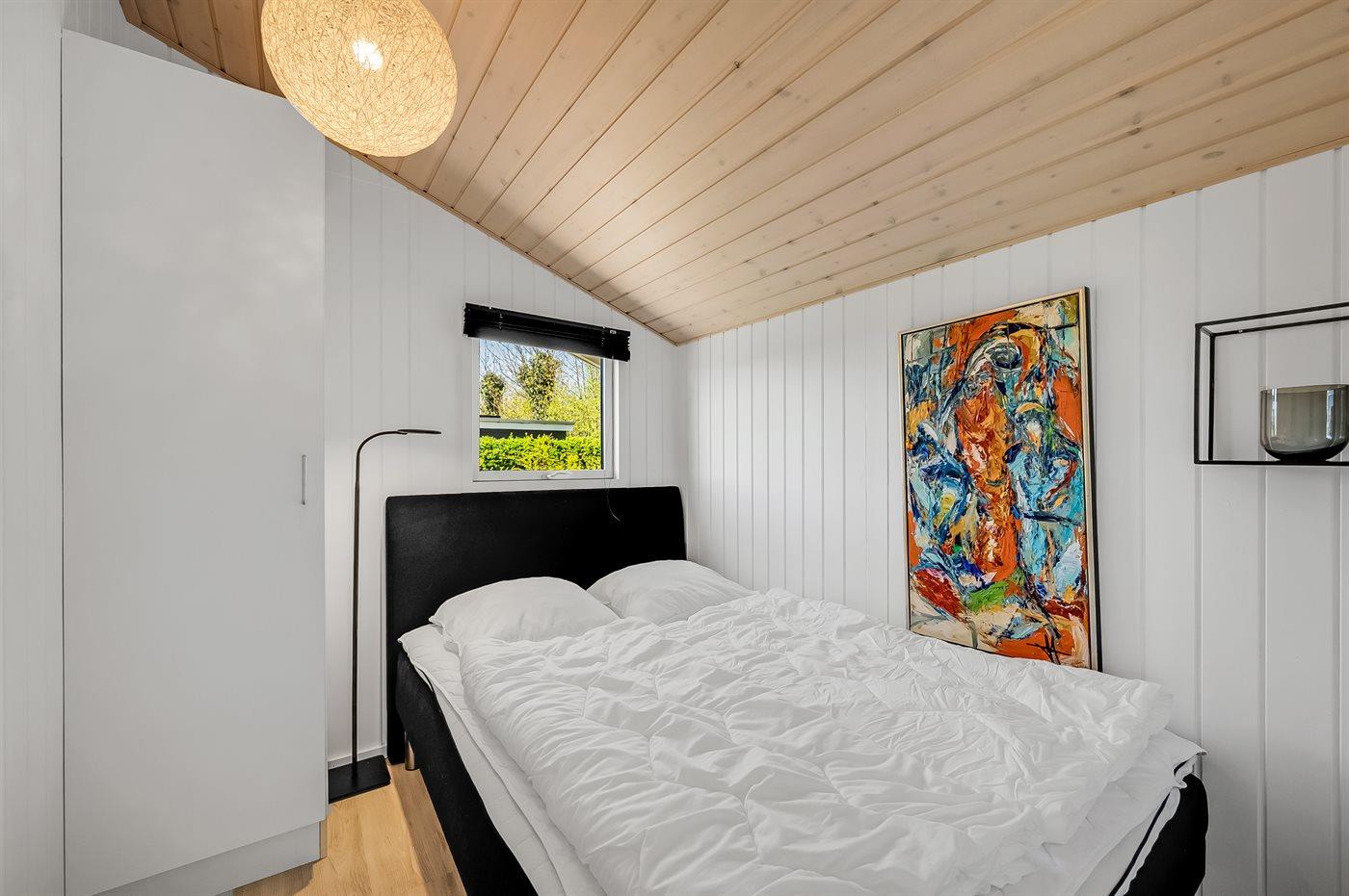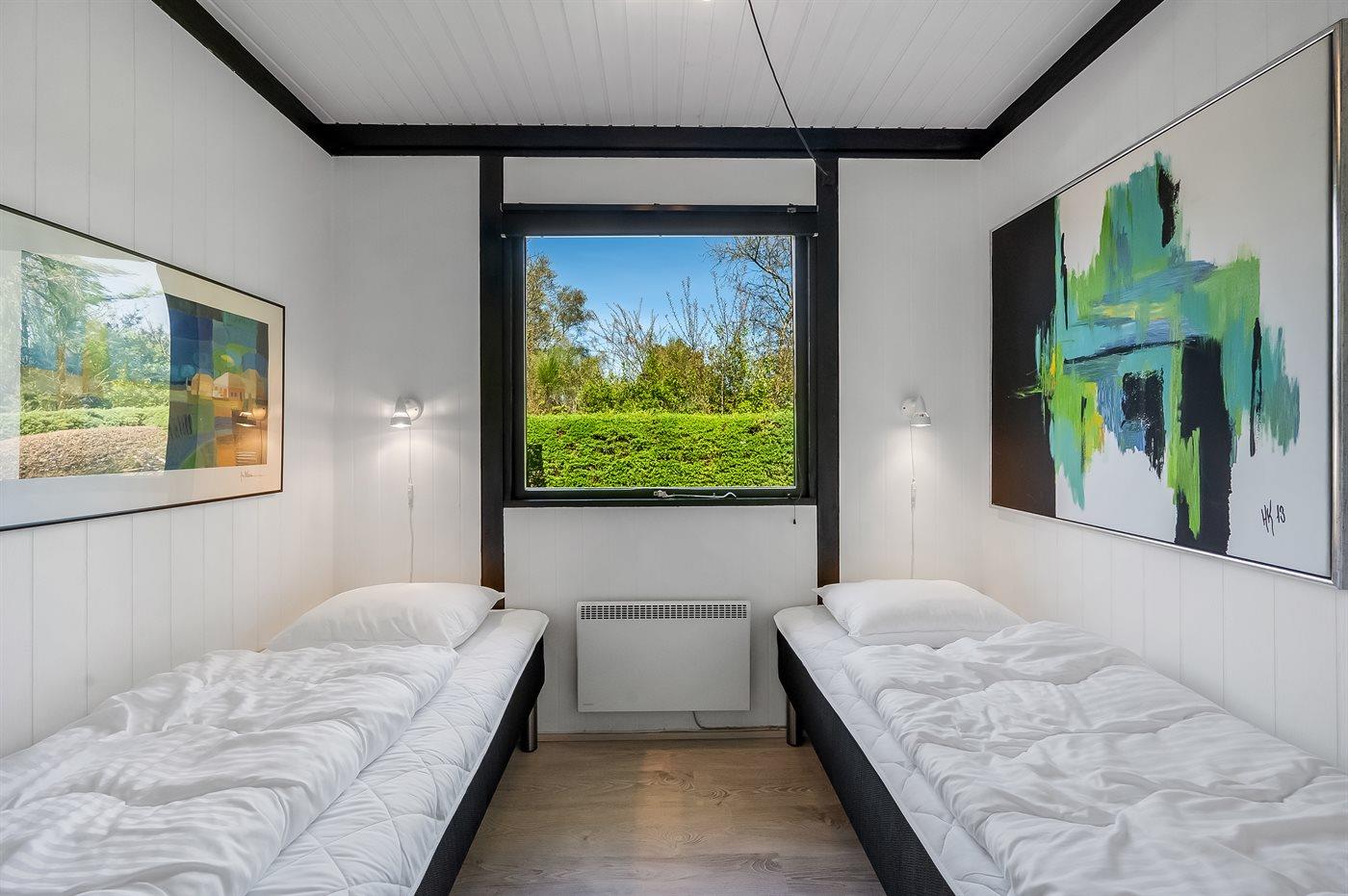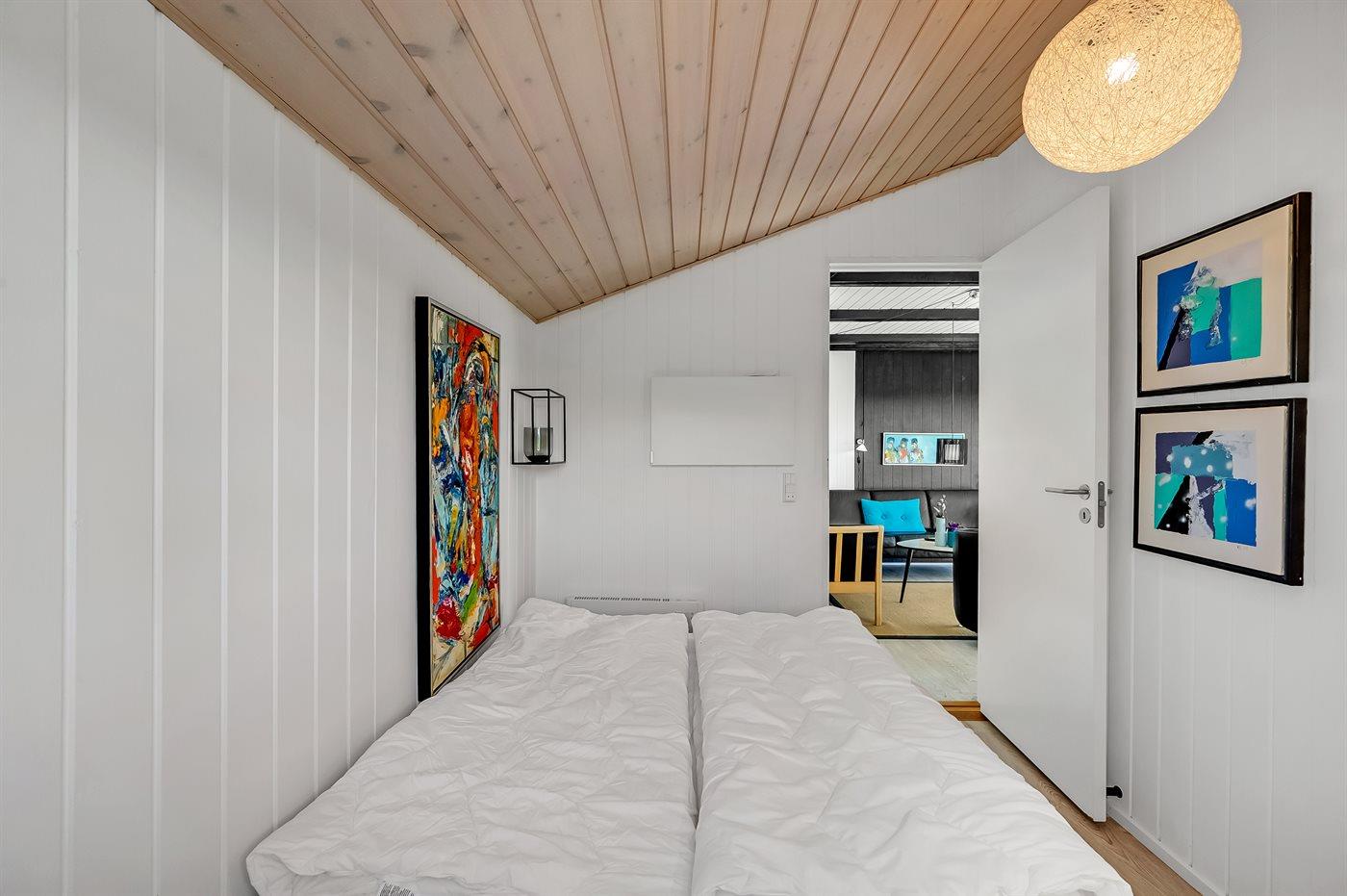 Der er i alt 3 soveværelser. Sovepladserne fordeler sig på: 4 sovepladser i dobbeltsenge. 2 sovepladser i enkeltsenge.