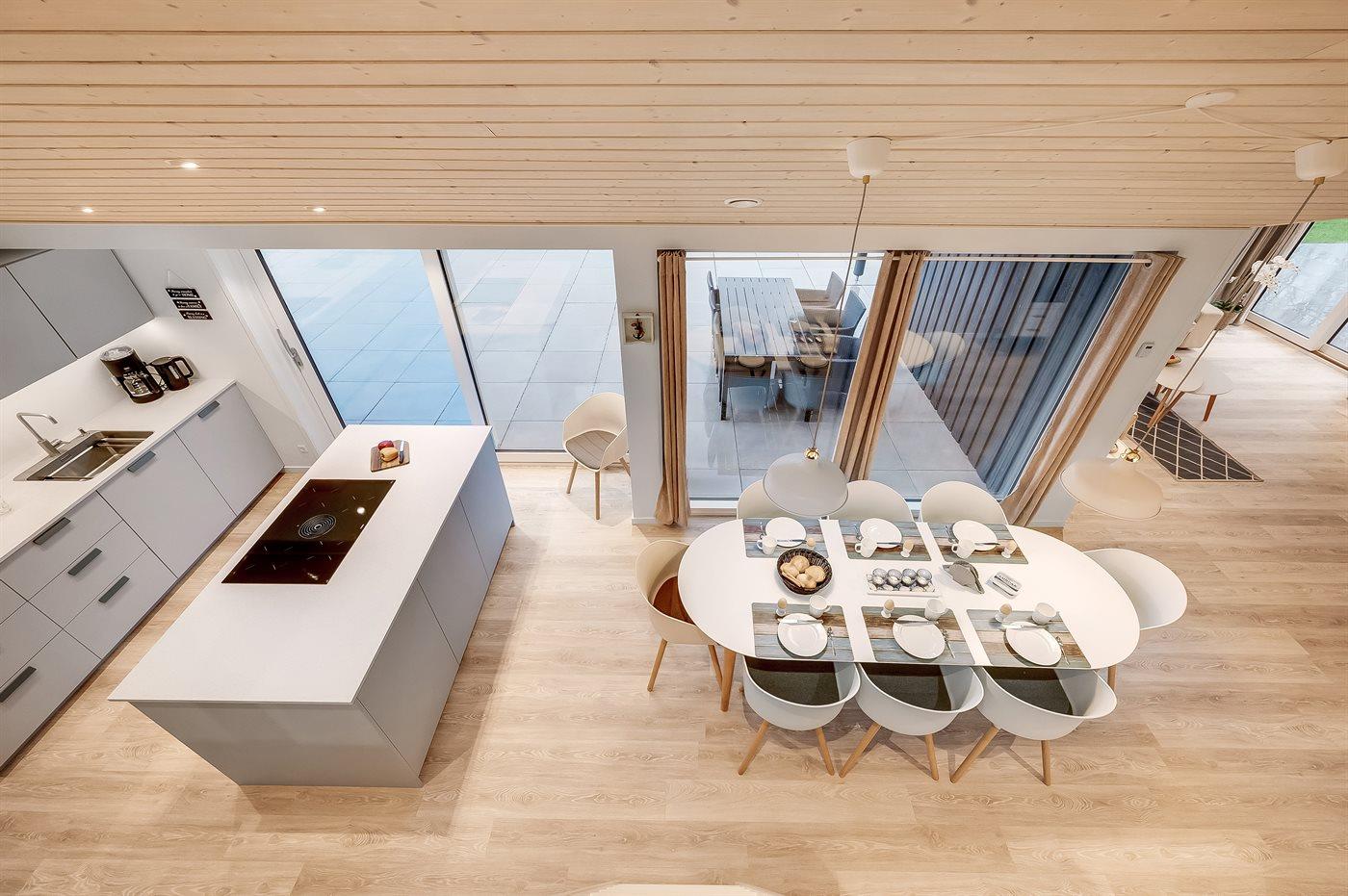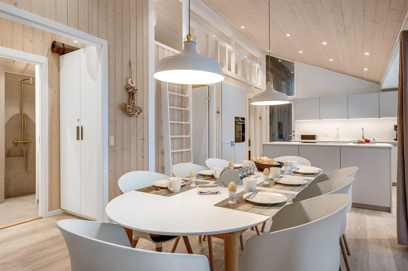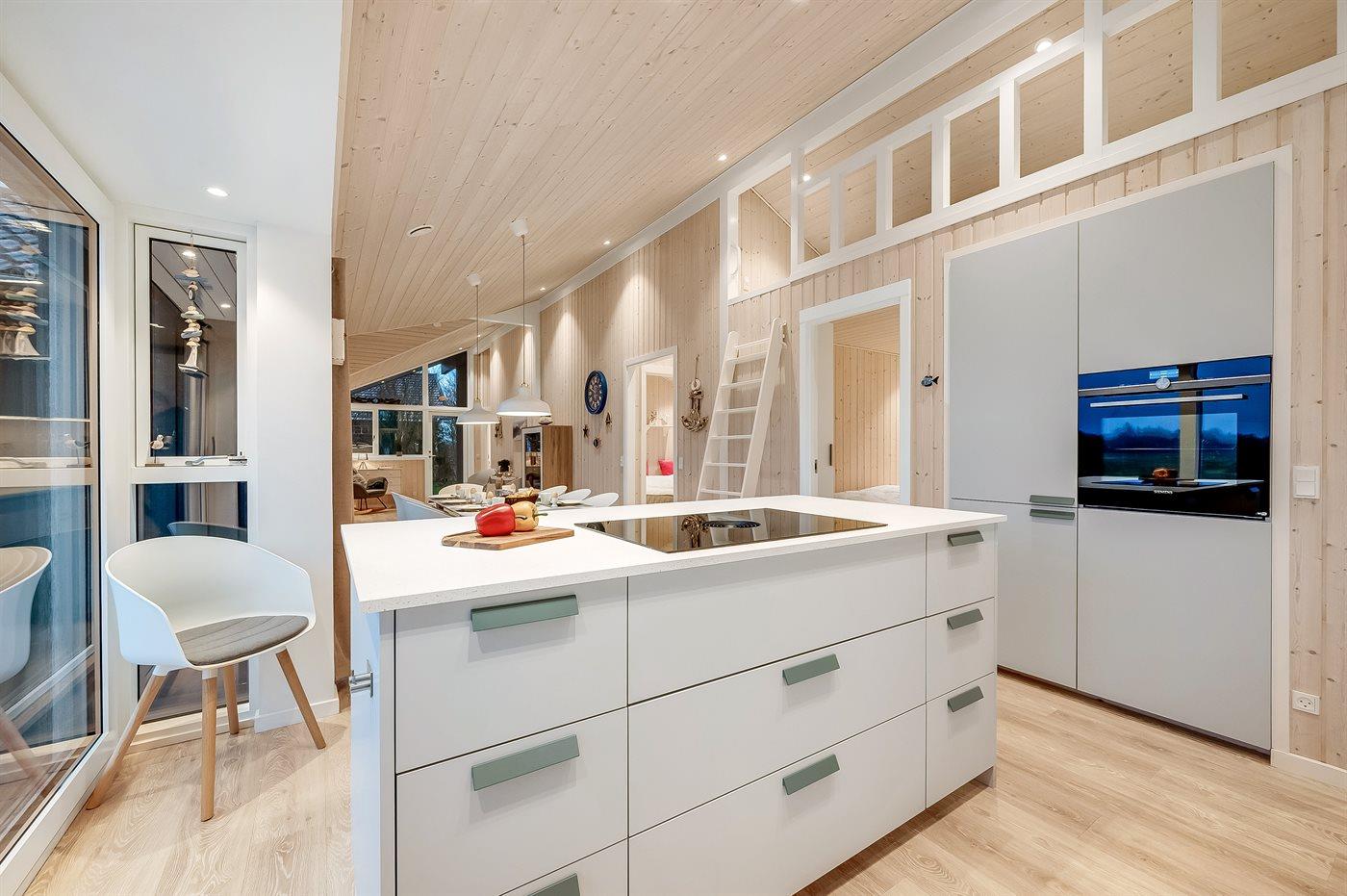 Køkkenet er udstyret med 1 køleskab. Der er 4 induktionskogeplader, varmluftovn, mikrobølgeovn samt opvaskemaskine.