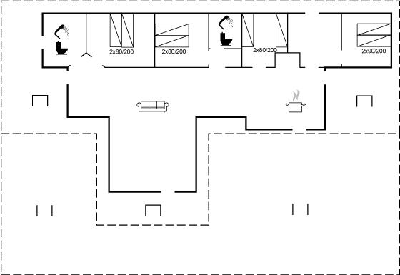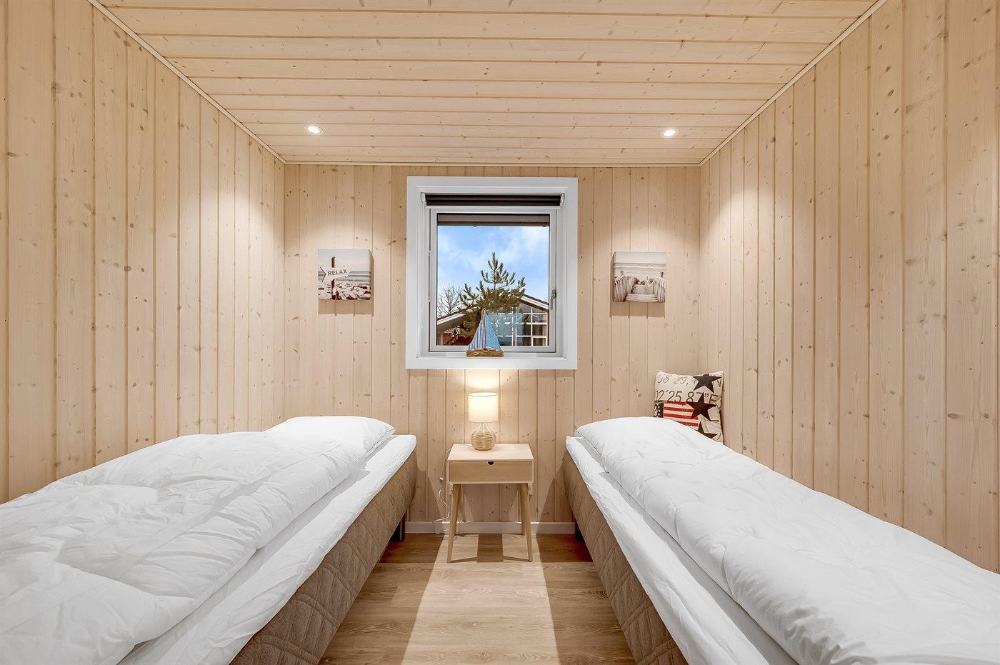 Der er i alt 4 soveværelser. Sovepladserne fordeler sig på: 6 sovepladser i dobbeltsenge. 2 sovepladser i enkeltsenge. 2 sovepladser på madrasser. 2 af disse sovepladser befinder sig på husets hems.