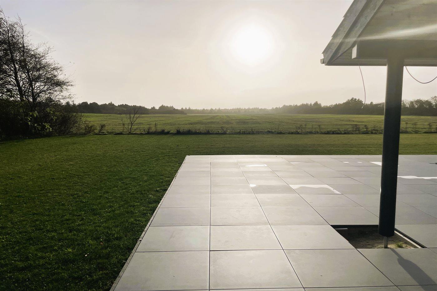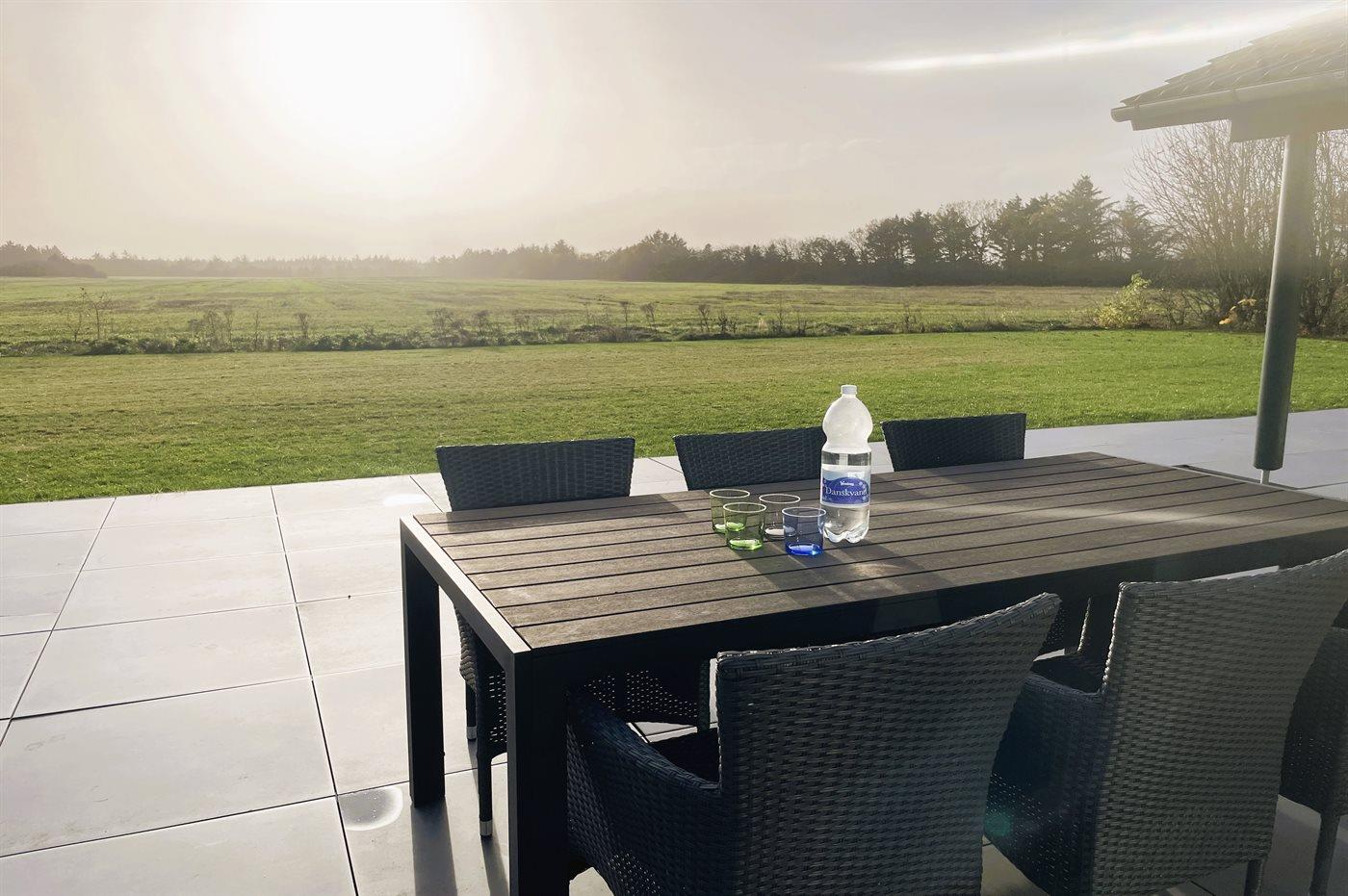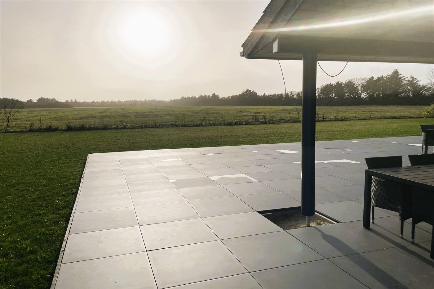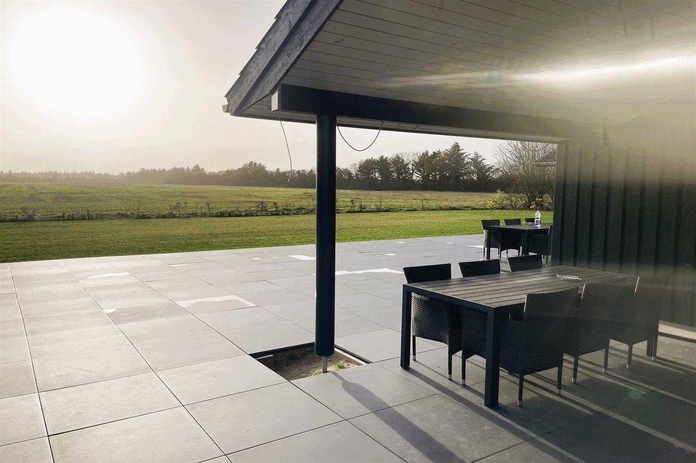 Nyt sommerhus ved Skaven Strand med stor terrasse og flot udsigt over markerne.