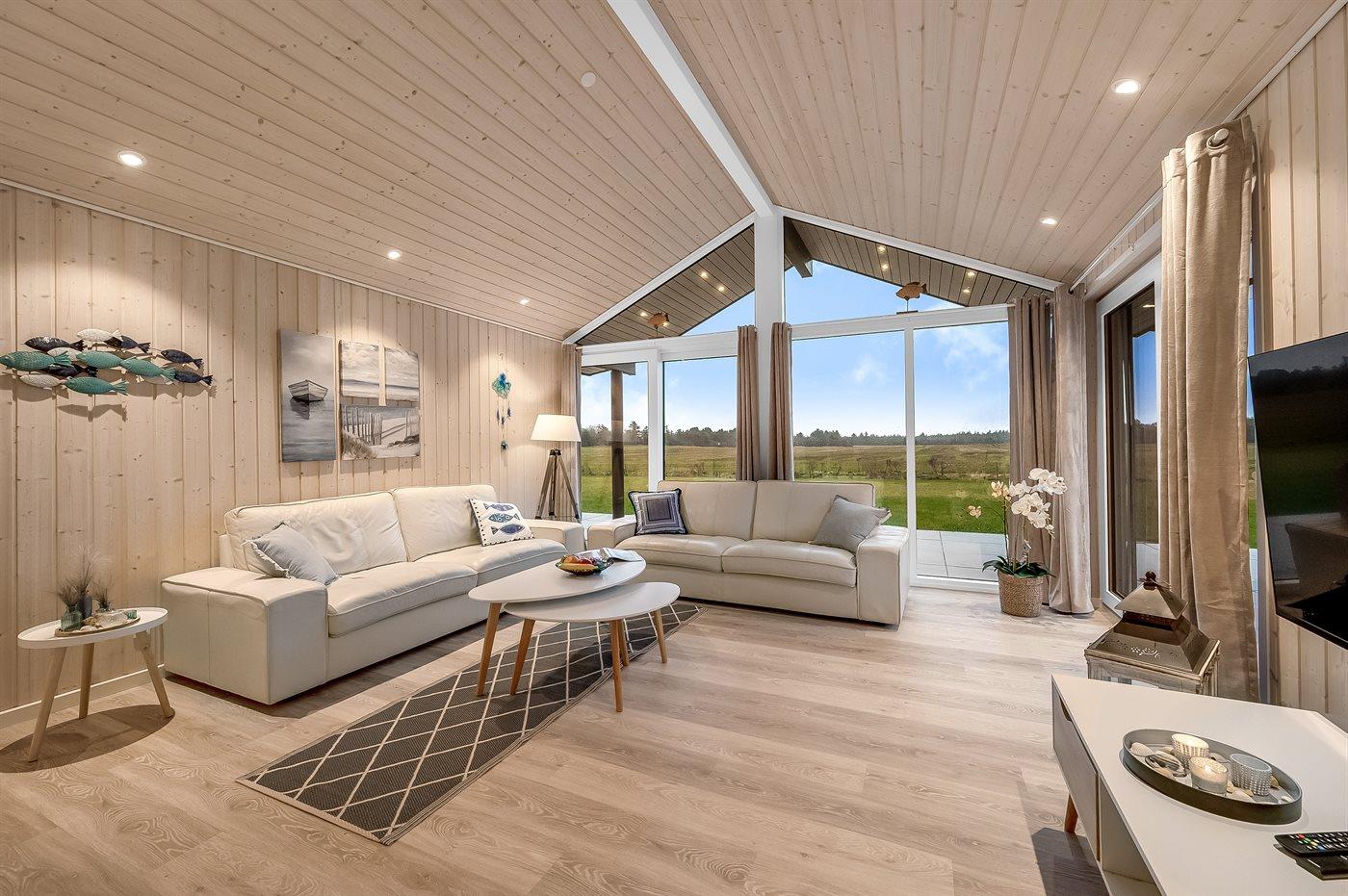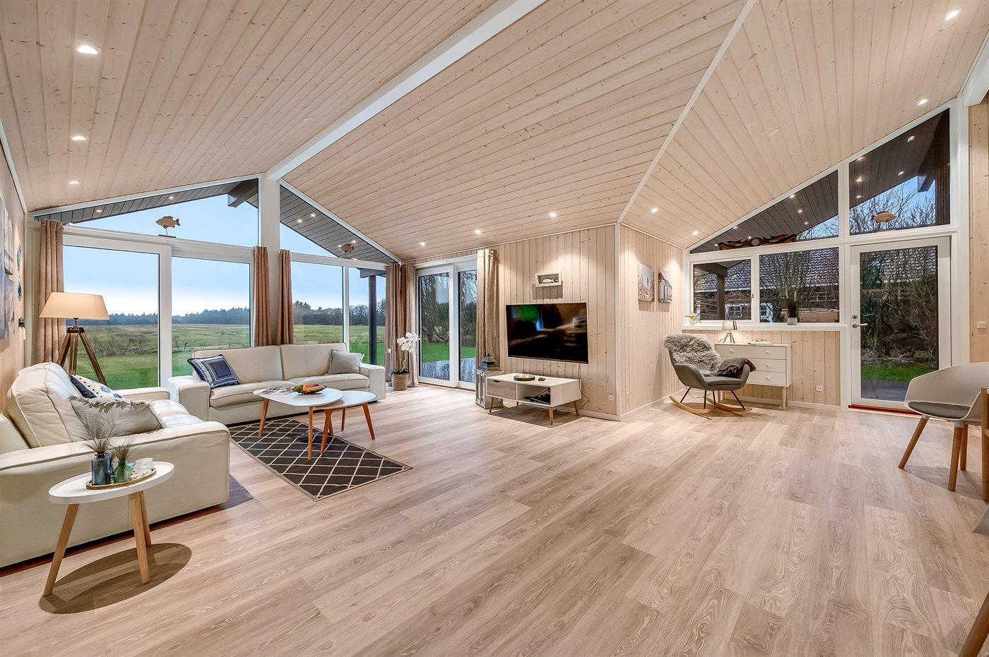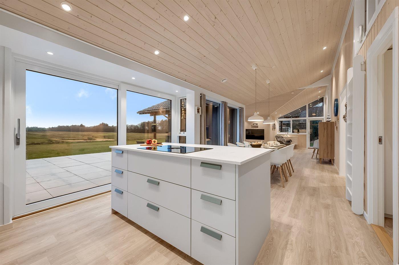 Sommerhuset er smukt indrettet og bygget i de lækreste materialer med sans for detaljen, og her er god plads at boltre sig på. Fra det store og hyggelige køkken-alrum er der den smukkeste udsigt over markerne via de store panoramavinduer, og her kommer harer, ræve og rådyr ofte på besøg.