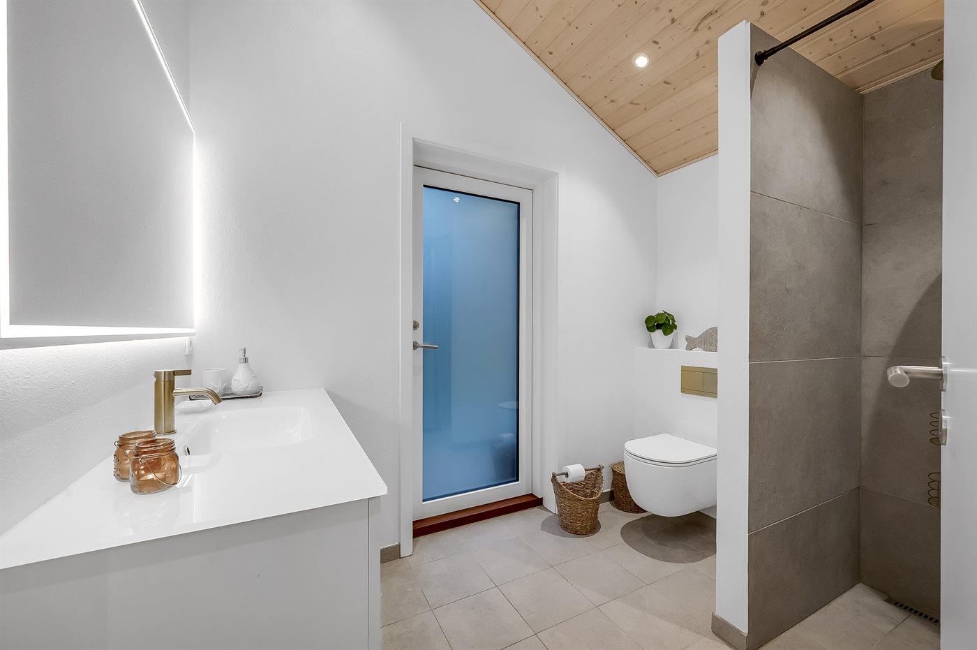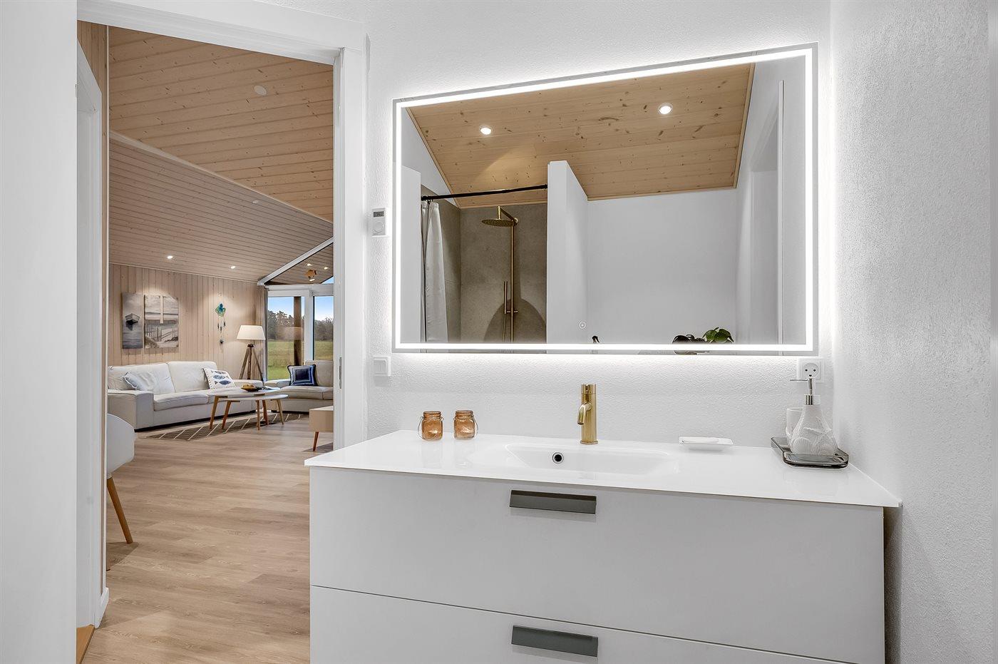 Der er 2 badeværelser med bruseniche og 2 toiletter. Der er gulvvarme på 2 badeværelser.