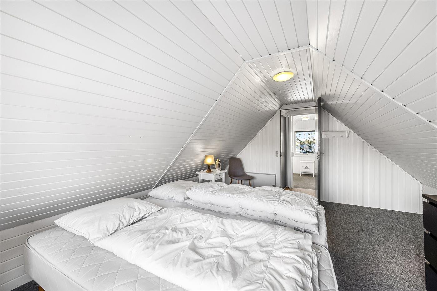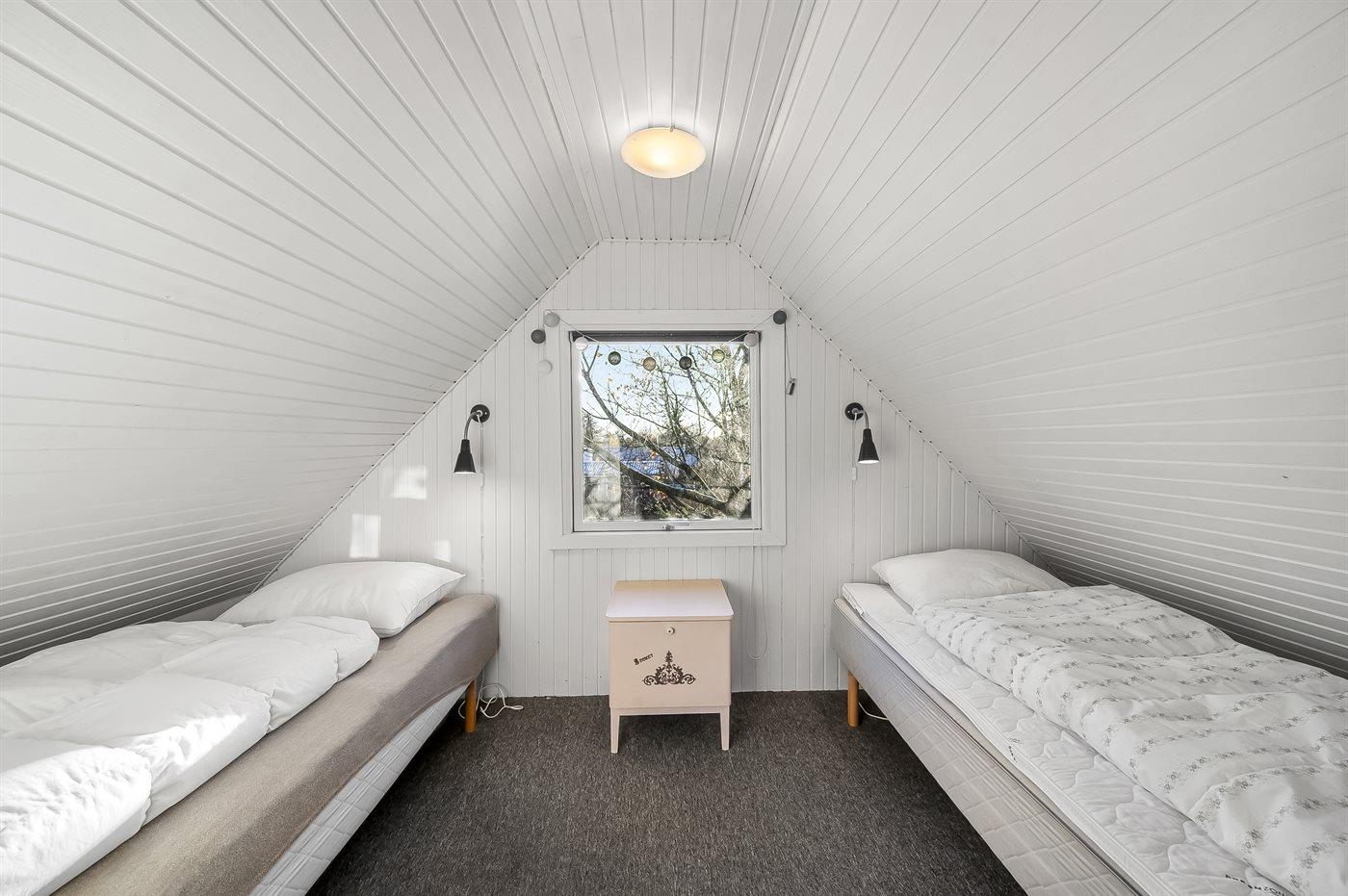 Der er i alt 3 soveværelser. Sovepladserne fordeler sig på: 2 sovepladser i dobbeltseng. 3 sovepladser i enkeltsenge.