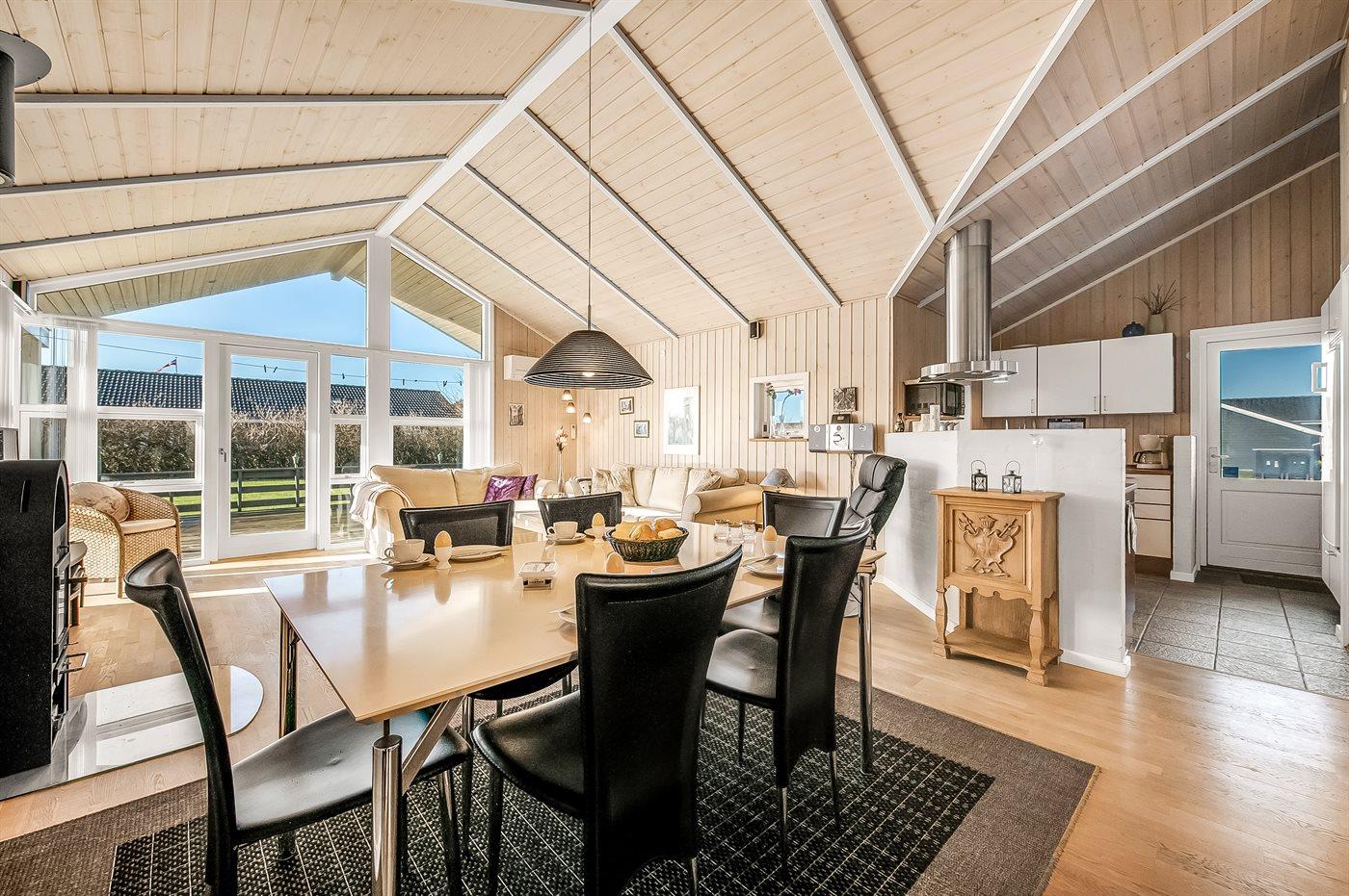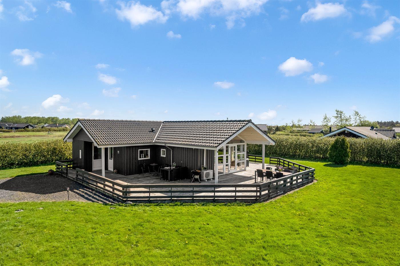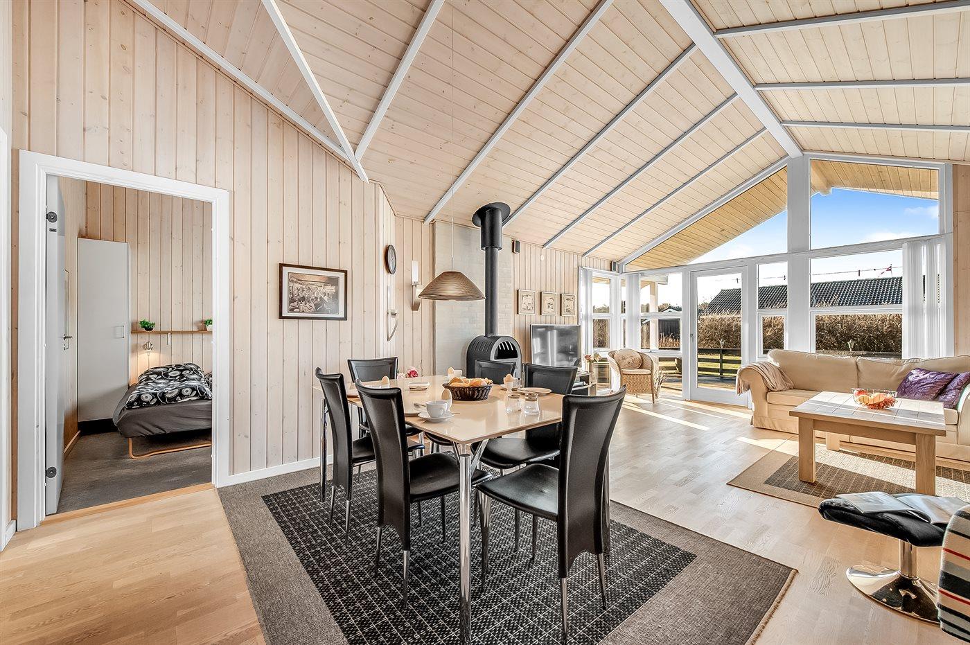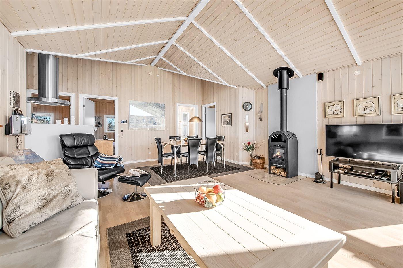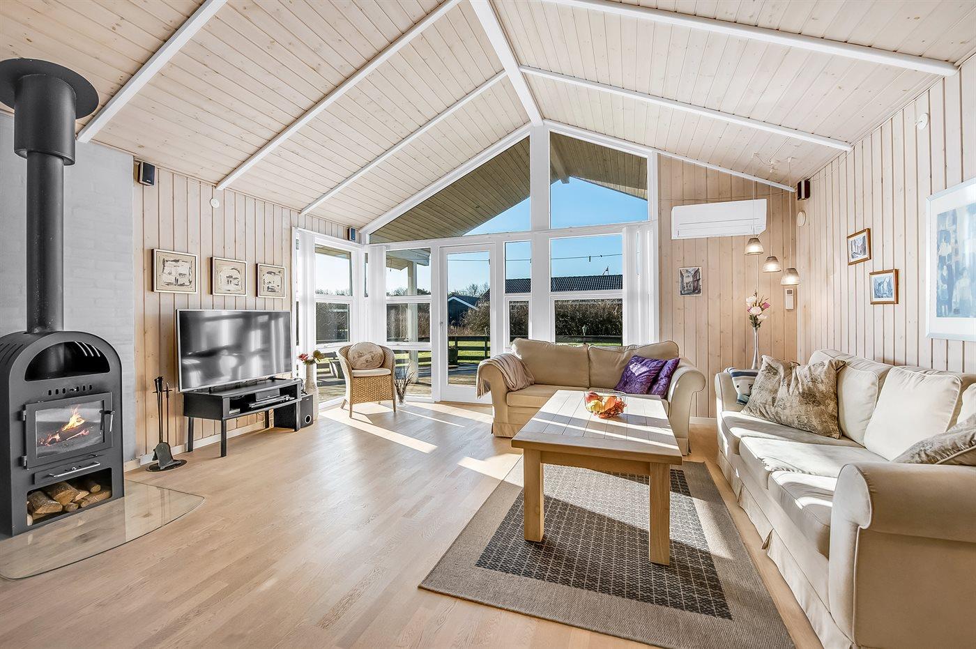 Sommerhuset egner sig til 6 personer. Ferieboligen er på 91 m² og er bygget i 2006. Det er tilladt at medbringe 1 husdyr. Ferieboligen er udstyret med 1 energibesparende luft til luft varmepumpe. Der er gulvvarme i alle klinkegulve. Ferieboligen har vaskemaskine. Tørretumbler. Frysekapacitet på 20 liter. Der er desuden brændeovn.