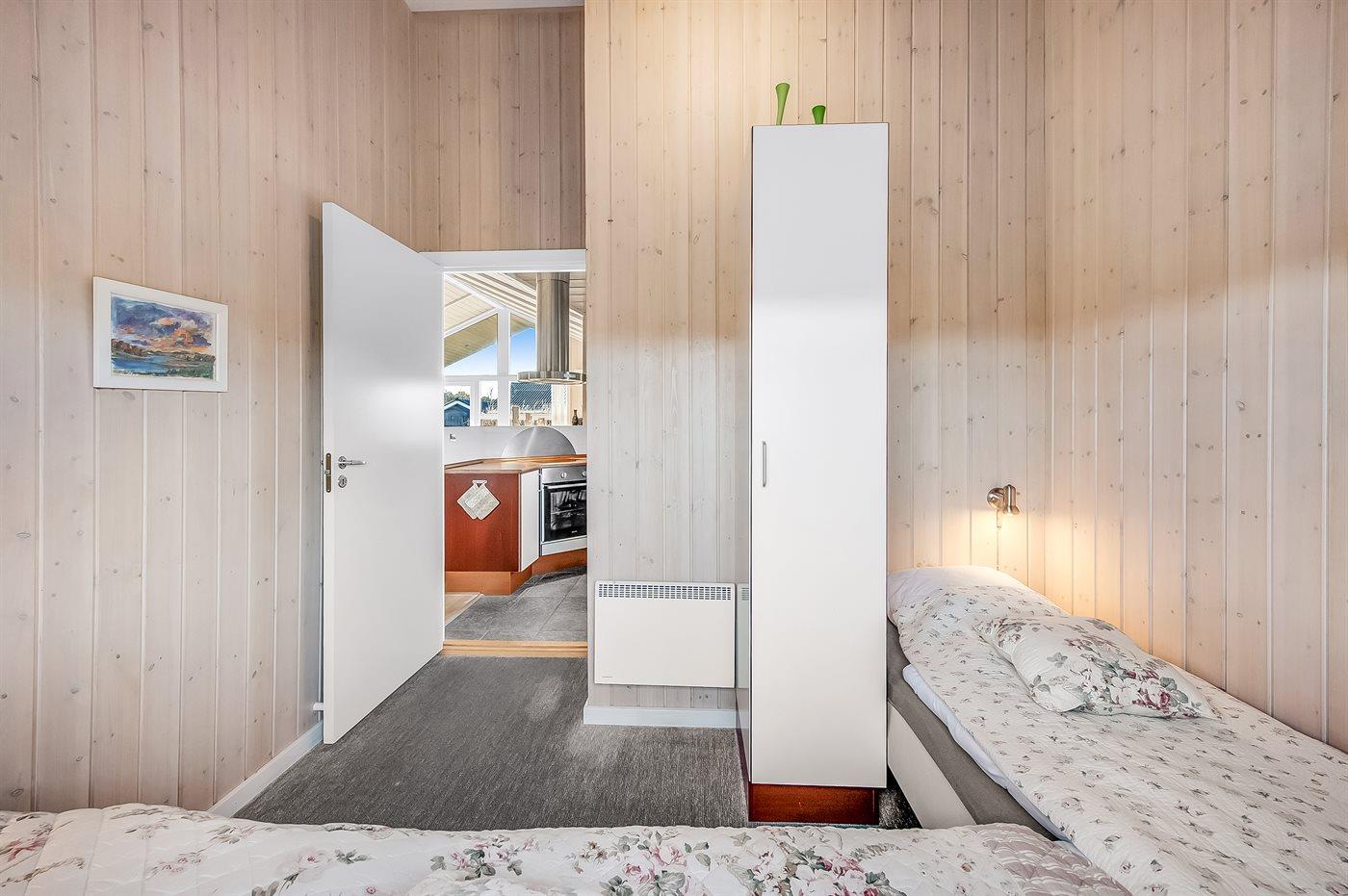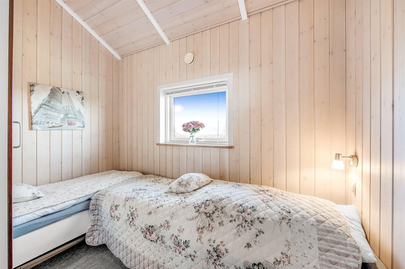 Der er i alt 3 soveværelser. Sovepladserne fordeler sig på: 4 sovepladser i dobbeltsenge. 2 sovepladser i enkeltsenge.