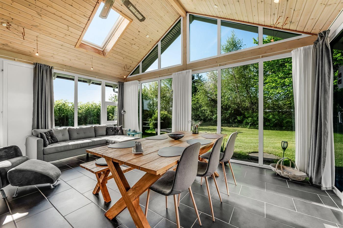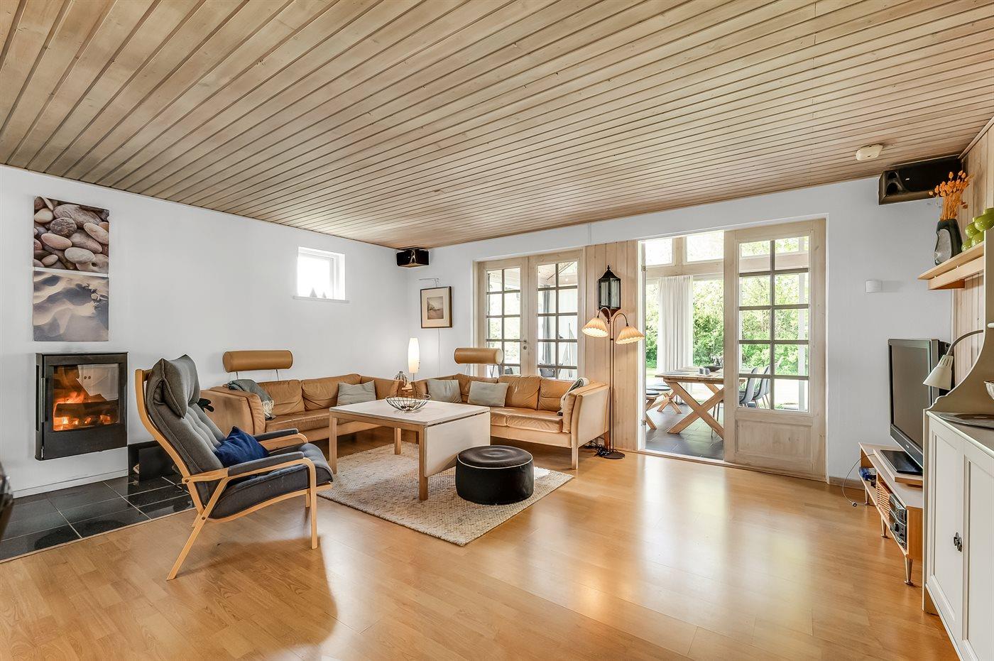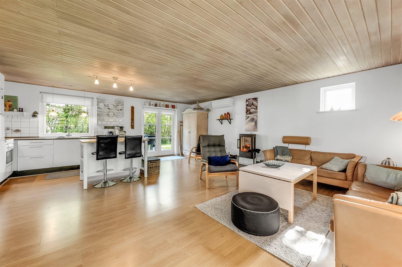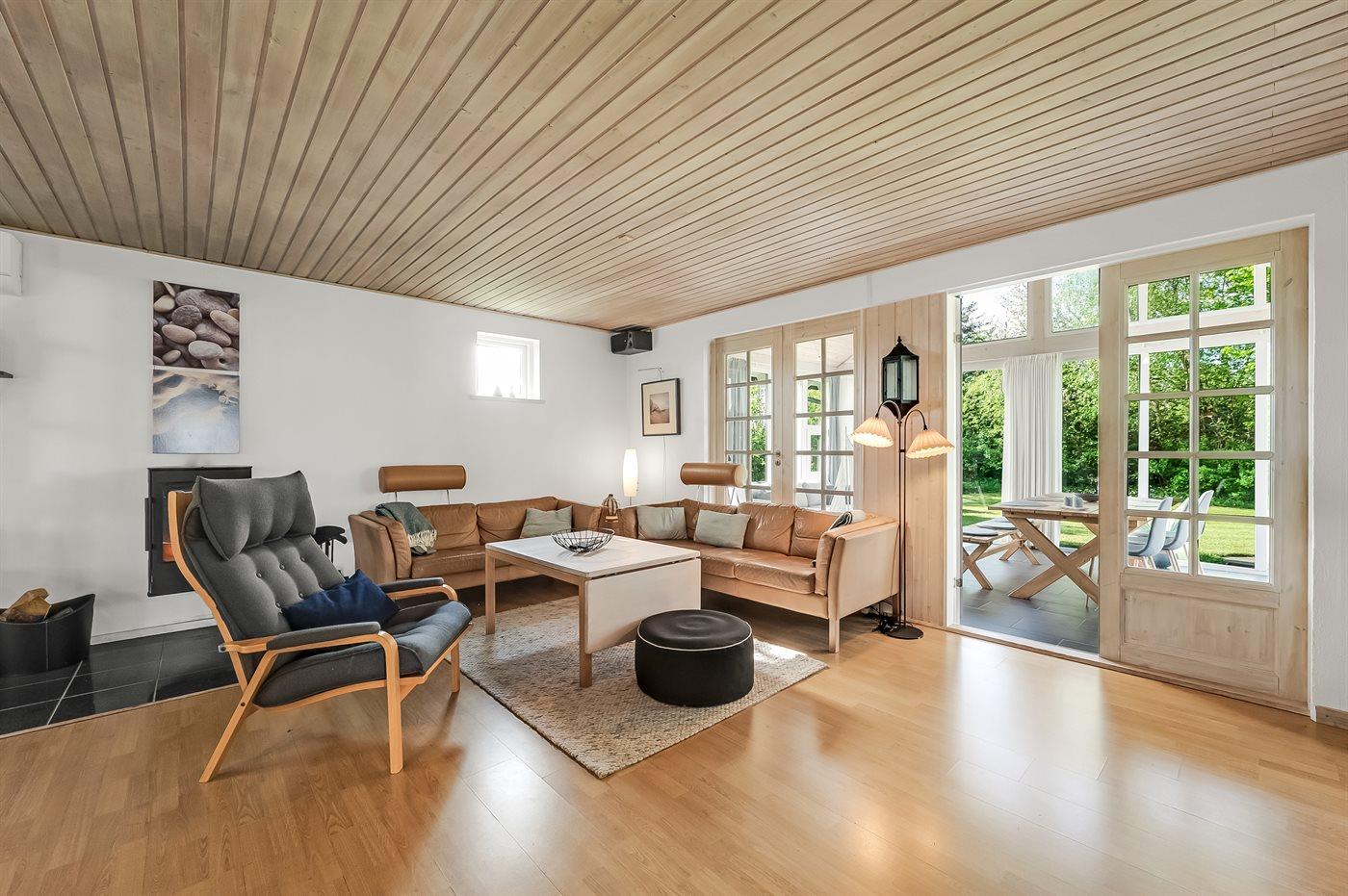 Indenfor kan du slænge dig i den store sofa og slappe af, mens du lytter til brændeovnens knitren, eller du kan rykke ud i den smukt indrettede udestue, hvor det føles som om man sidder midt ude i naturen – her kan du tilbringe skønne stunder både sommer og vinter, da udestuen er udstyret med gulvvarme.