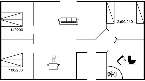 Der er i alt 3 soveværelser. Sovepladserne fordeler sig på: 6 sovepladser i dobbeltsenge. Derudover er der 1 stk. barneseng.