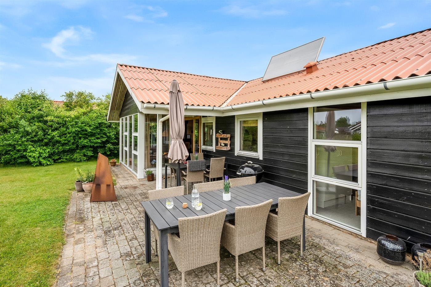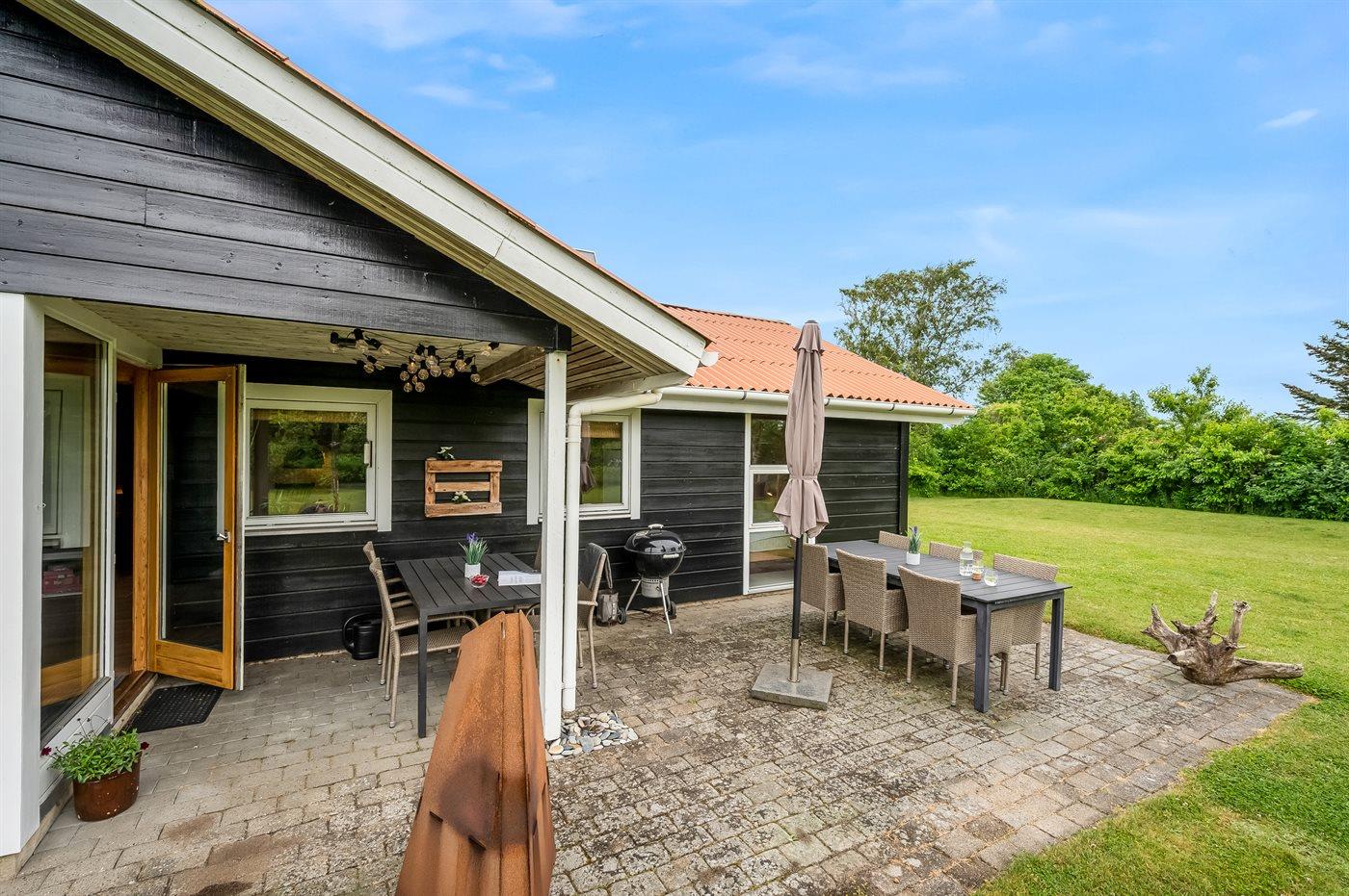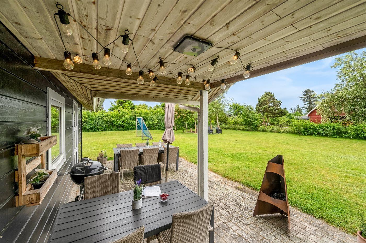 Ferieboligen er beliggende på en 1350 m² stor havegrund. Grunden er indhegnet. Der er 13200 m til havet. Der er 400 m til fjorden. Nærmeste forretning er beliggende i en afstand af 100 m. Til ferieboligen hører åbent terrasseareal. Desuden er der overdækket terrasse. Fodboldmål. Bålsted. På lune aftener sørger en udendørs pejs for hyggelig stemning. Parkering ved ferieboligen.